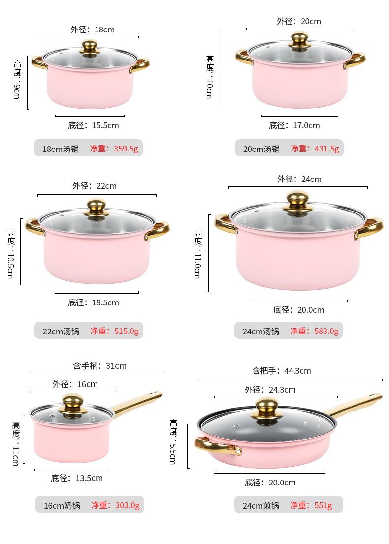 18+20+22+24cm soup pot+16cm milk pot+24cm frying pan