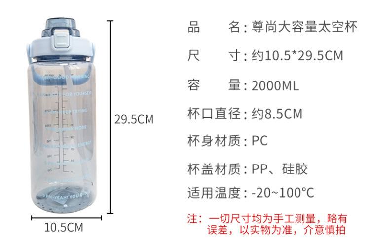 Vaso Espacial de Gran Capacidad Vaso de Plástico con Escala y Popote Botella de Agua de Plástico Portátil para Exteriores Botella de Agua Deportiva para Hombres y Mujeres