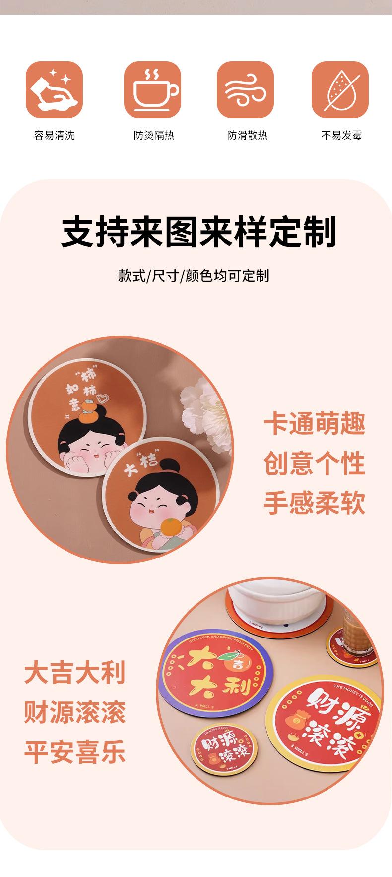Posavasos de goma suave de PVC con impresión a color personalizada, mantel individual de silicona con dibujos animados, tapete aislante térmico, tapete antideslizante con logotipo personalizado
