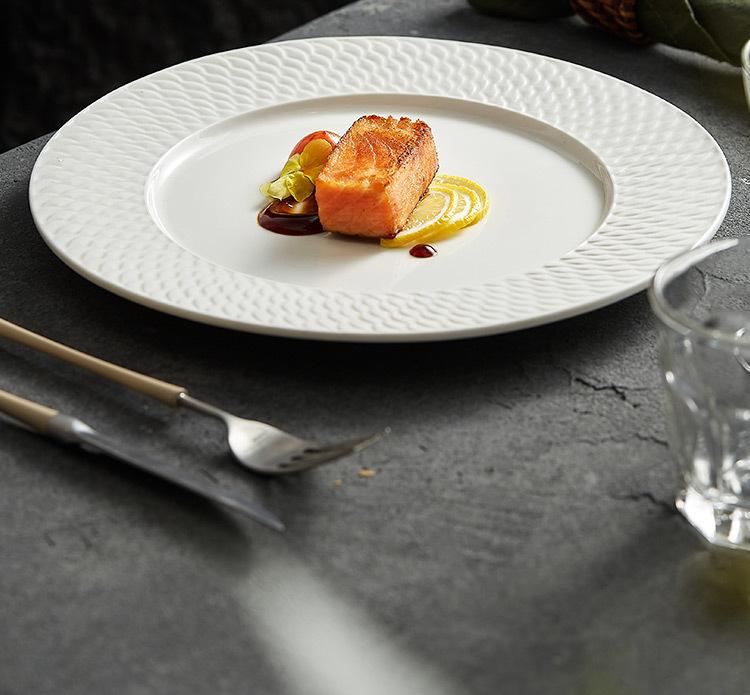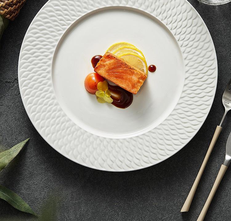 Compra Plato occidental de cerámica en relieve plato de exhibición de hotel de alta gama vajilla blanca creativa plato para bistec de alta calidad plato de restaurante al por mayor en Joom.pro