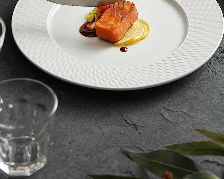 Plato occidental de cerámica en relieve plato de exhibición de hotel de alta gama vajilla blanca creativa plato para bistec de alta calidad plato de restaurante
