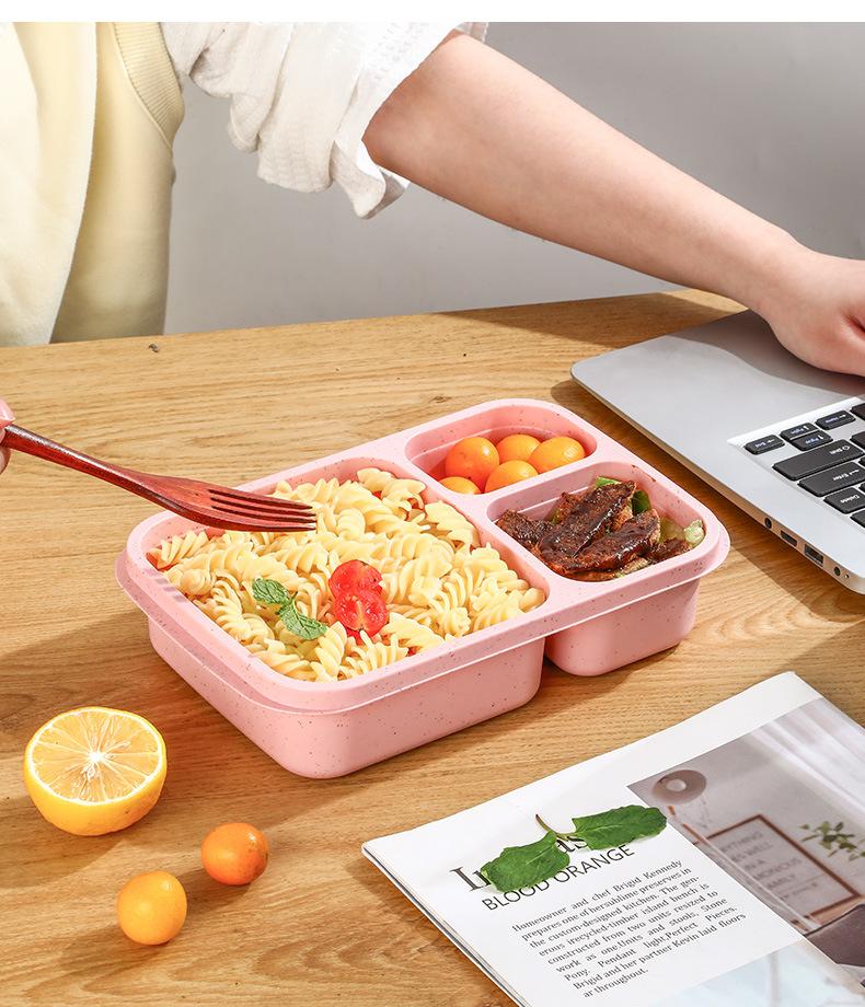 Fiambrera Personal de Taquilla Sellada con Comida Fiambrera Estudiantes Compartimento de Tres Puntos con Tapa Caja Conservadora Fiambrera Snacks Plato para Comer