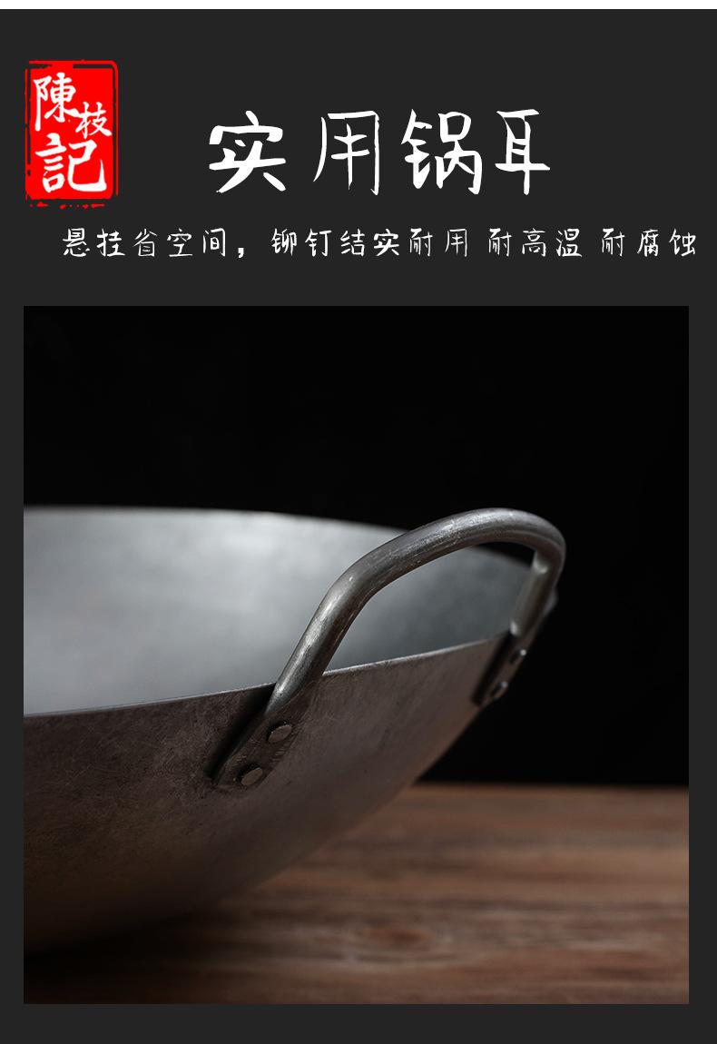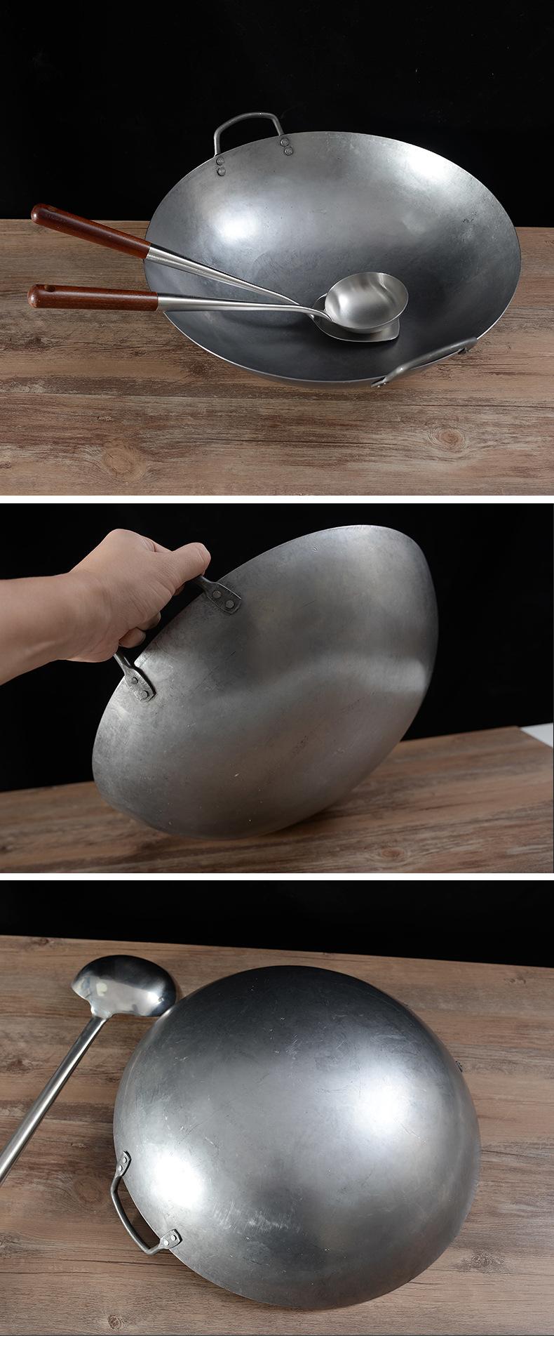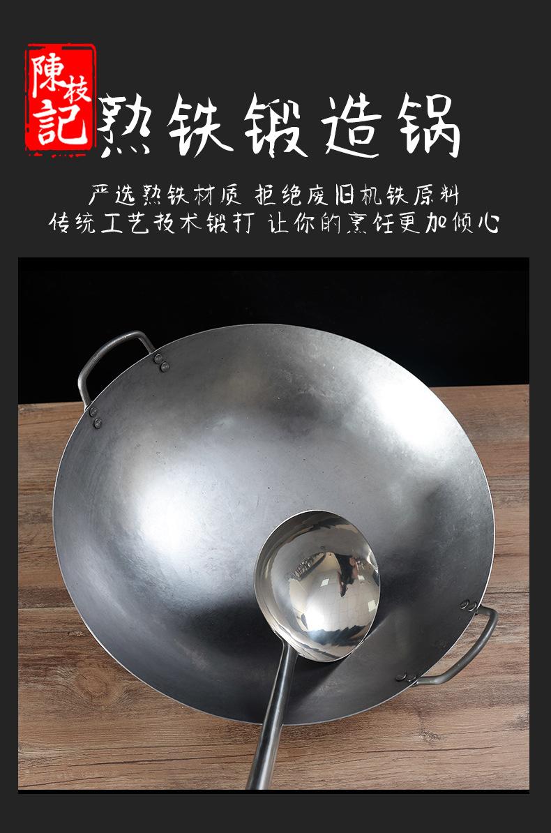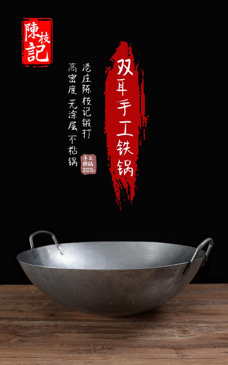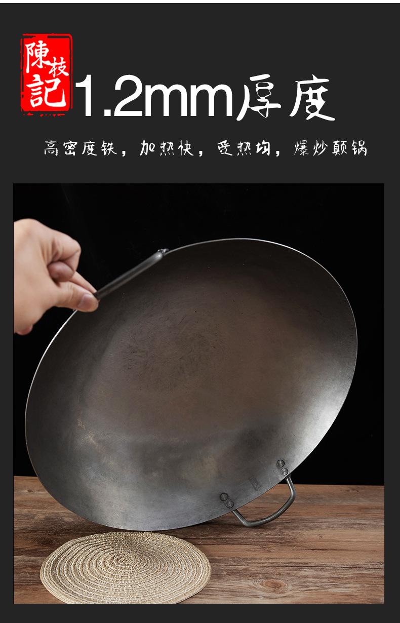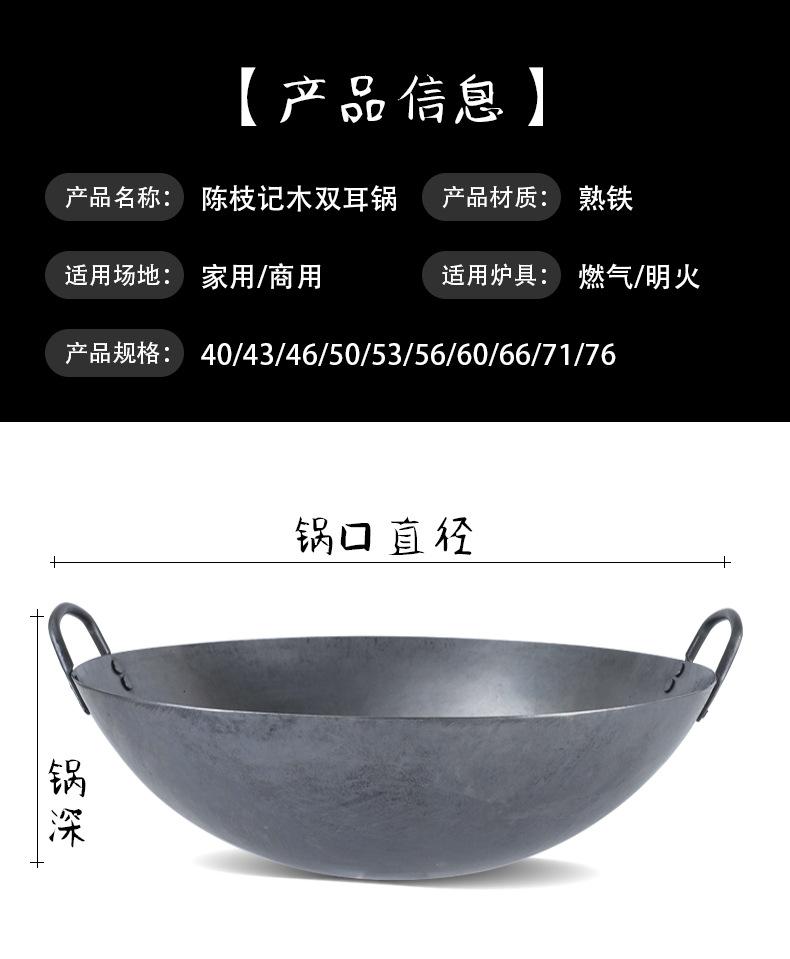 Chen Zhiji Olla Grande Binaural de Hierro Fundido Vieja Hecha a Mano Tradicional Comedor Comercial Extra Grande Wok de Madera 40/60/76cm