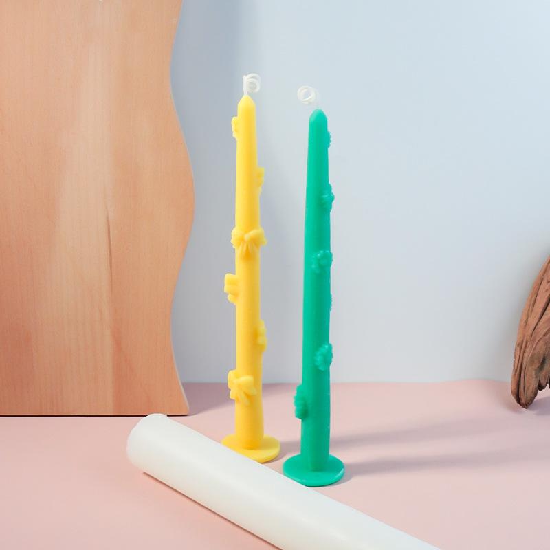 Molde cilíndrico largo para velas de aromaterapia, hecho a mano, con forma de margarita y lazo de amor de Zhongcheng, molde de silicona