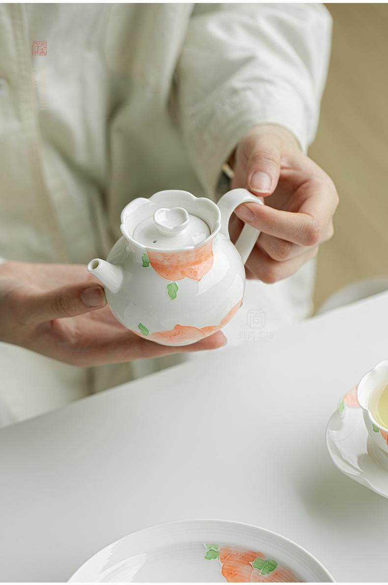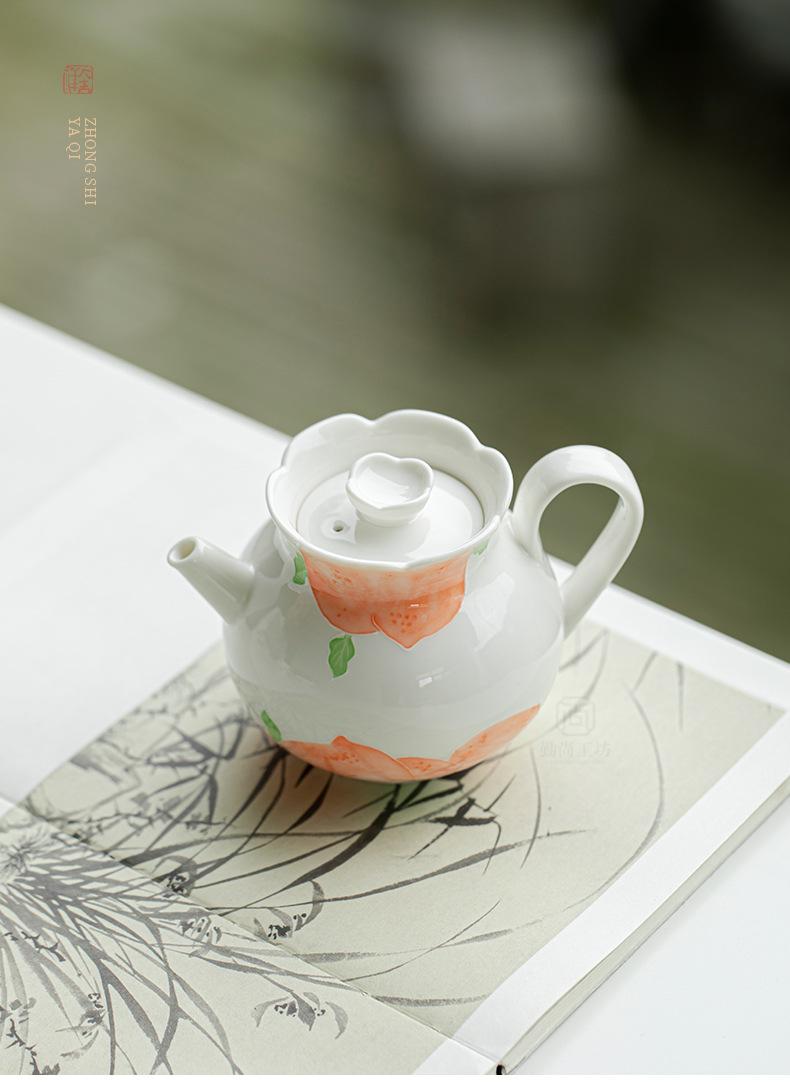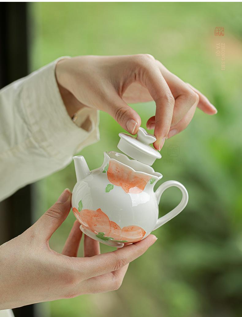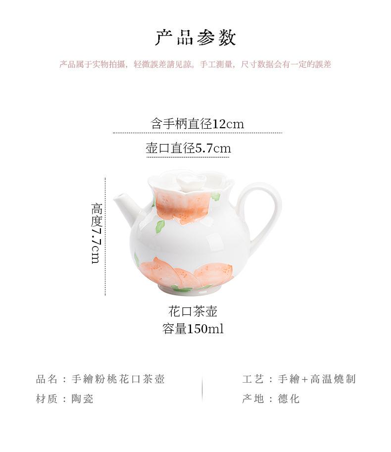 Tetera de pétalo de durazno rosa con color bajo cubierta pintado a mano, juego de té kung fu de cerámica para el hogar, tetera con filtro para manos no calientes, individual