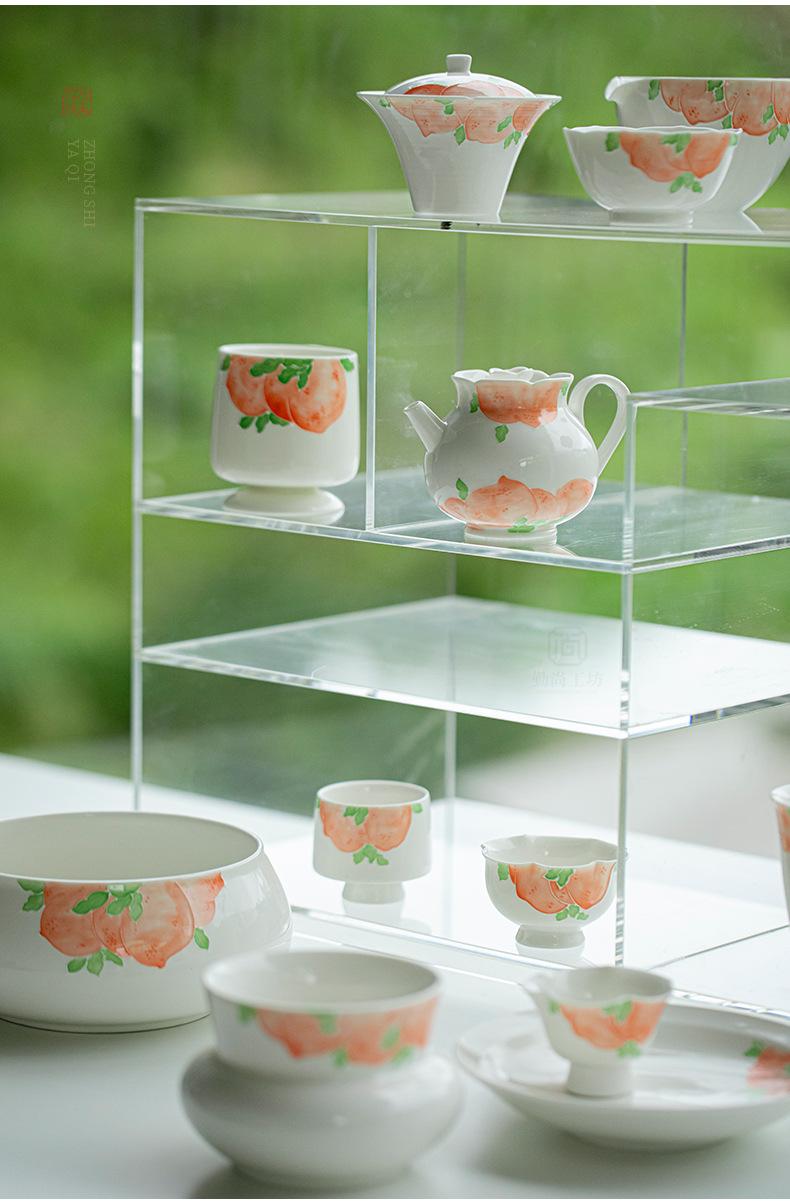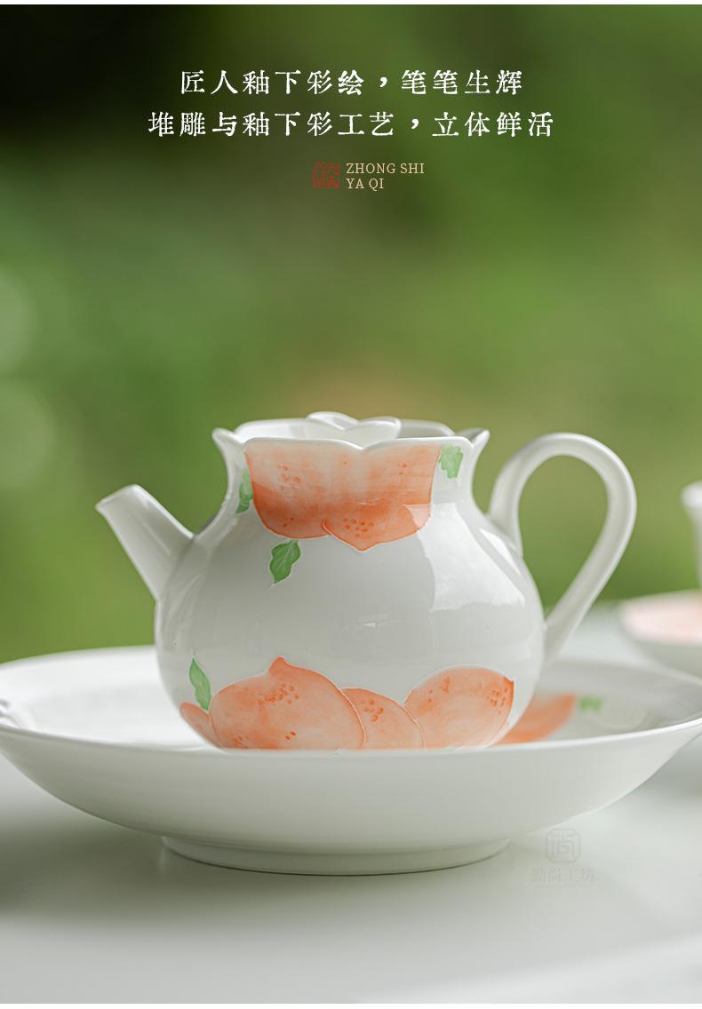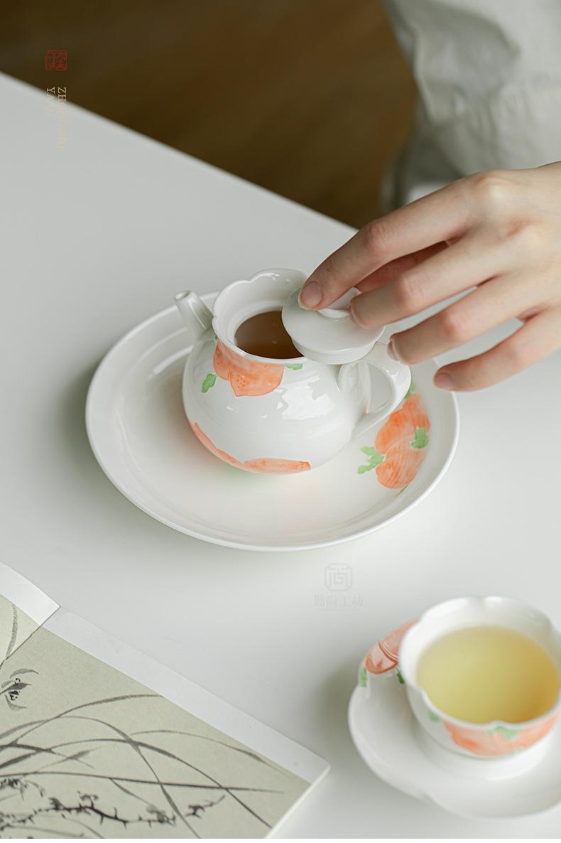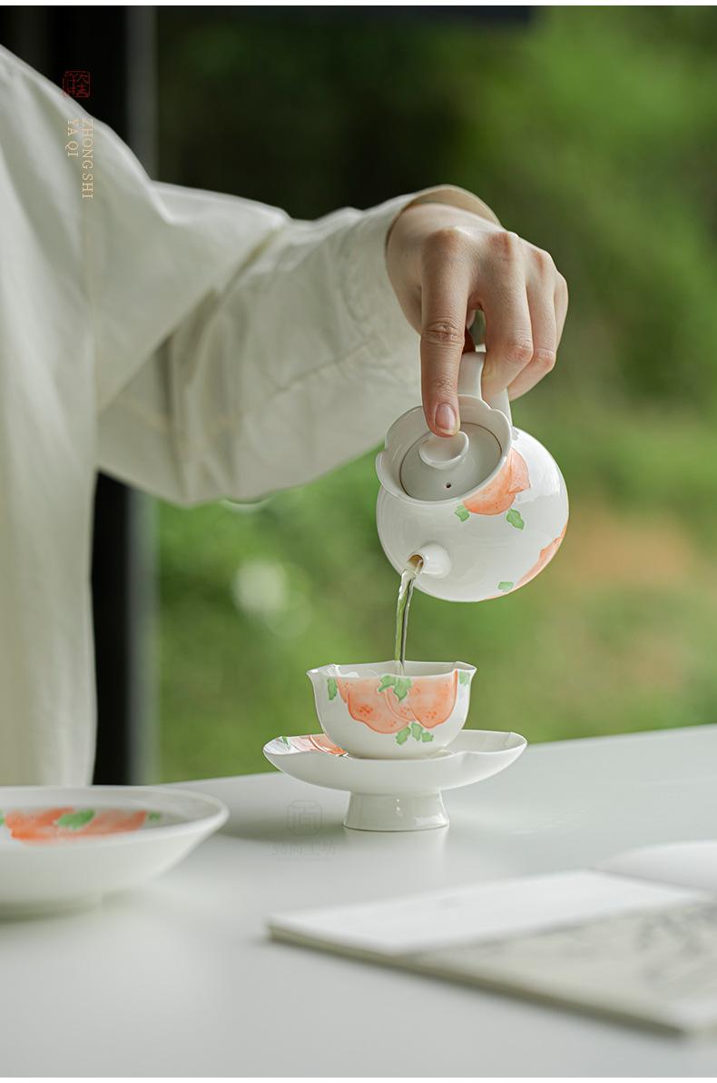 Tetera de pétalo de durazno rosa con color bajo cubierta pintado a mano, juego de té kung fu de cerámica para el hogar, tetera con filtro para manos no calientes, individual