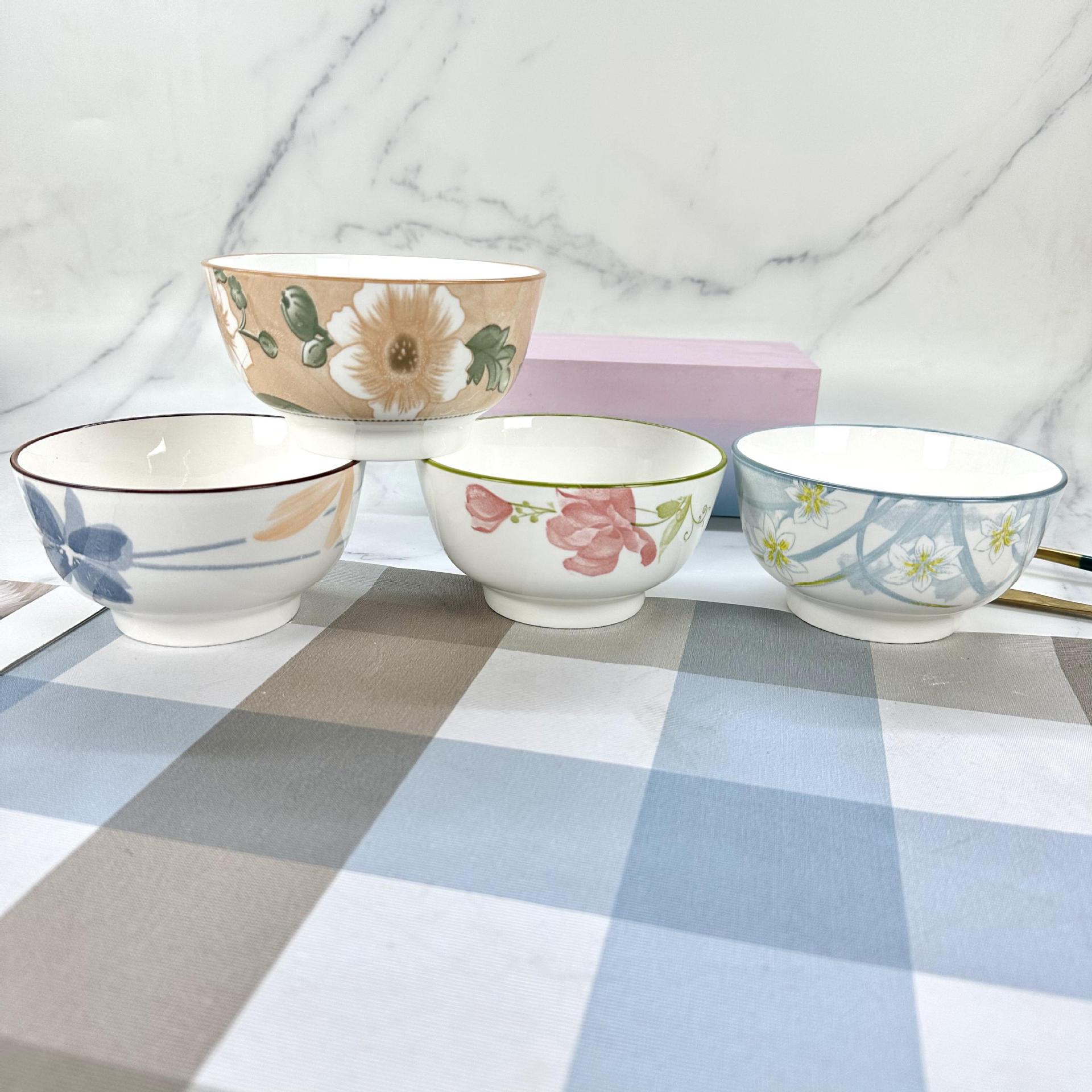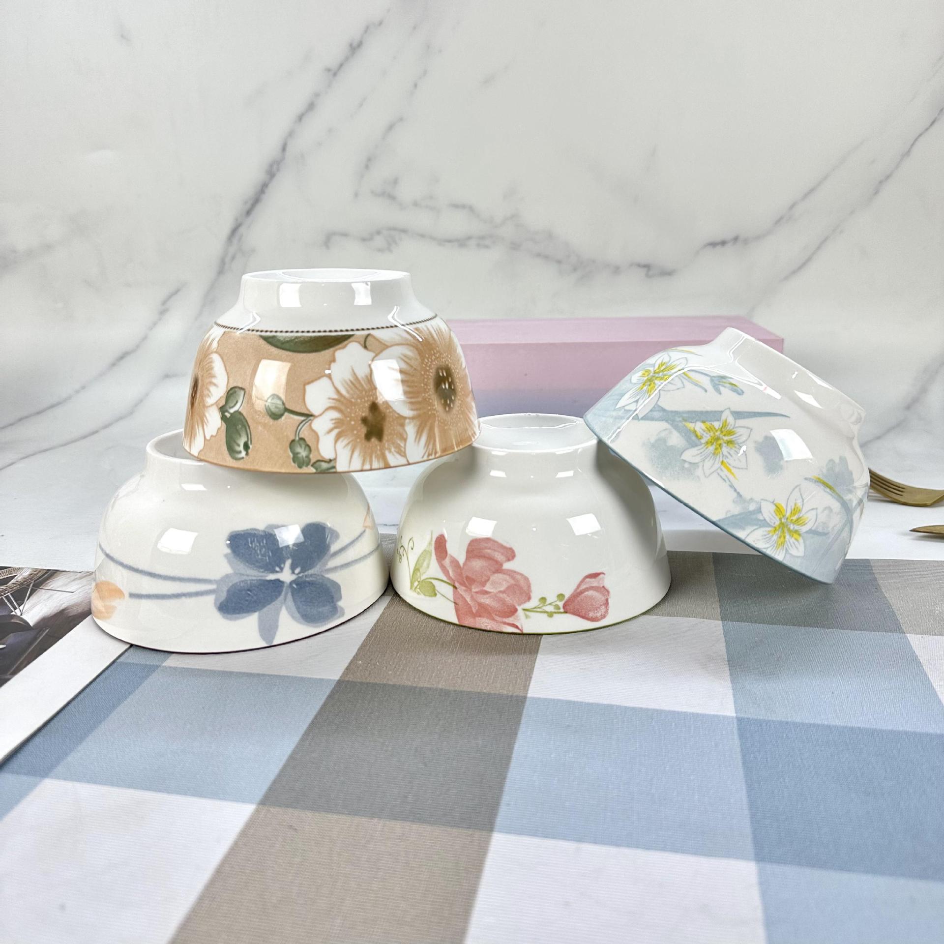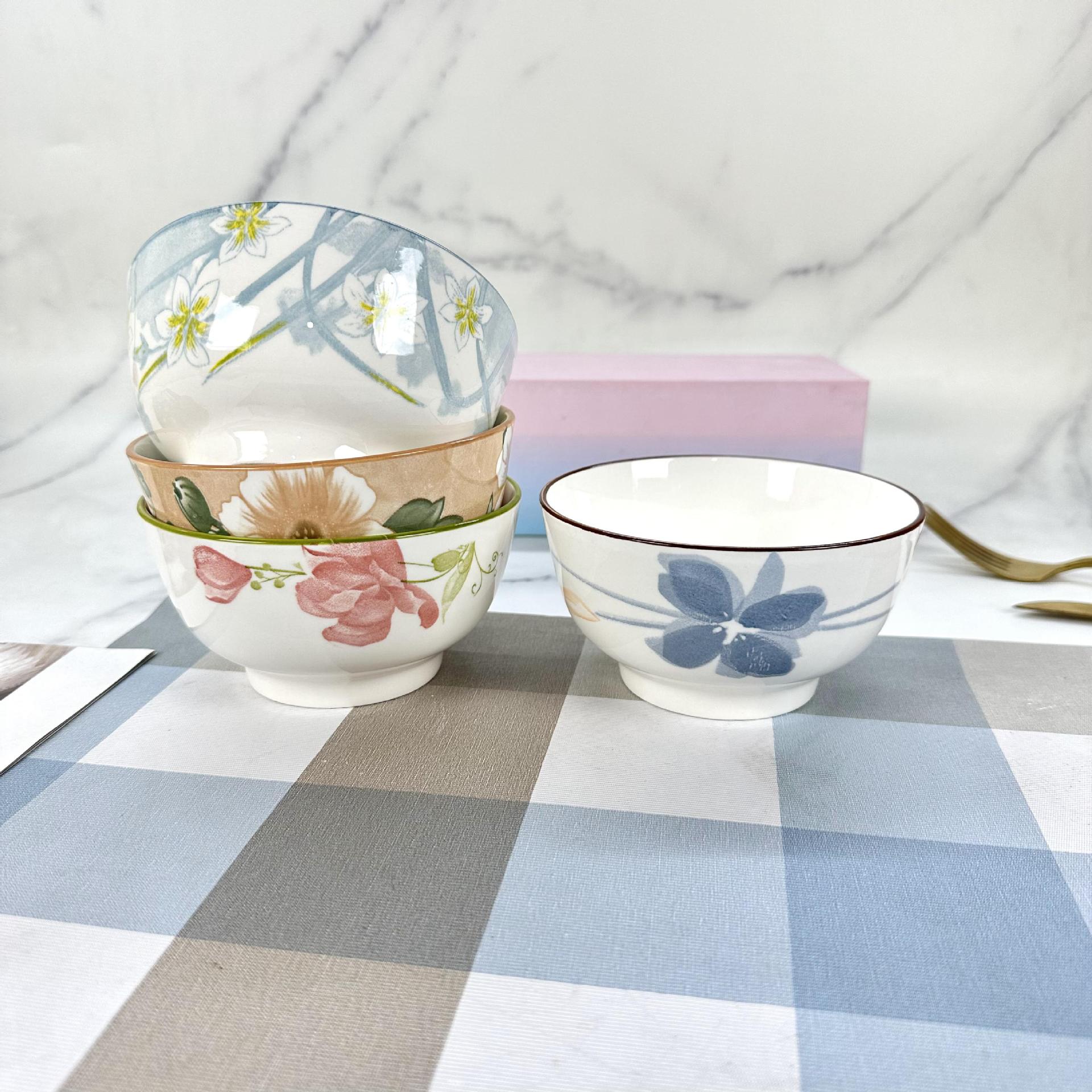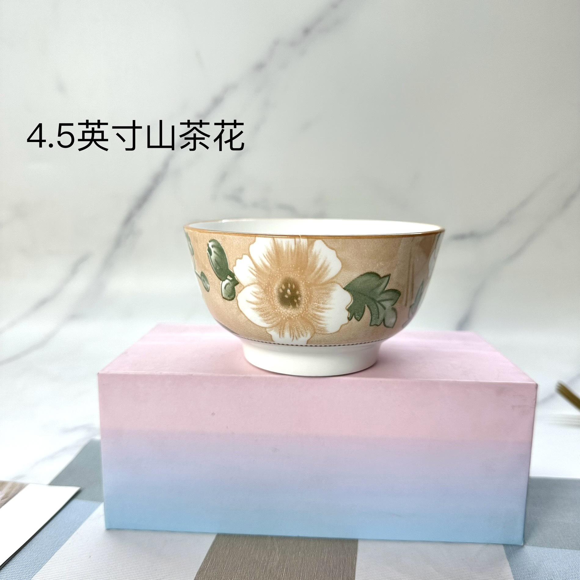 Tazón de cerámica 4.5 pulgadas productos secundarios mayoreo regalo tazón de cerámica plato cerámica bajo esmalte camelias narcisos