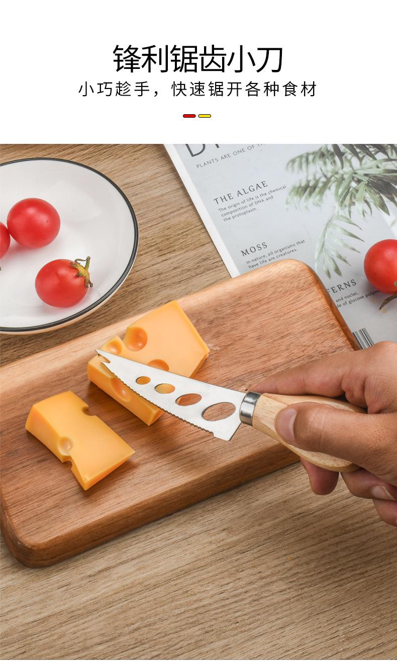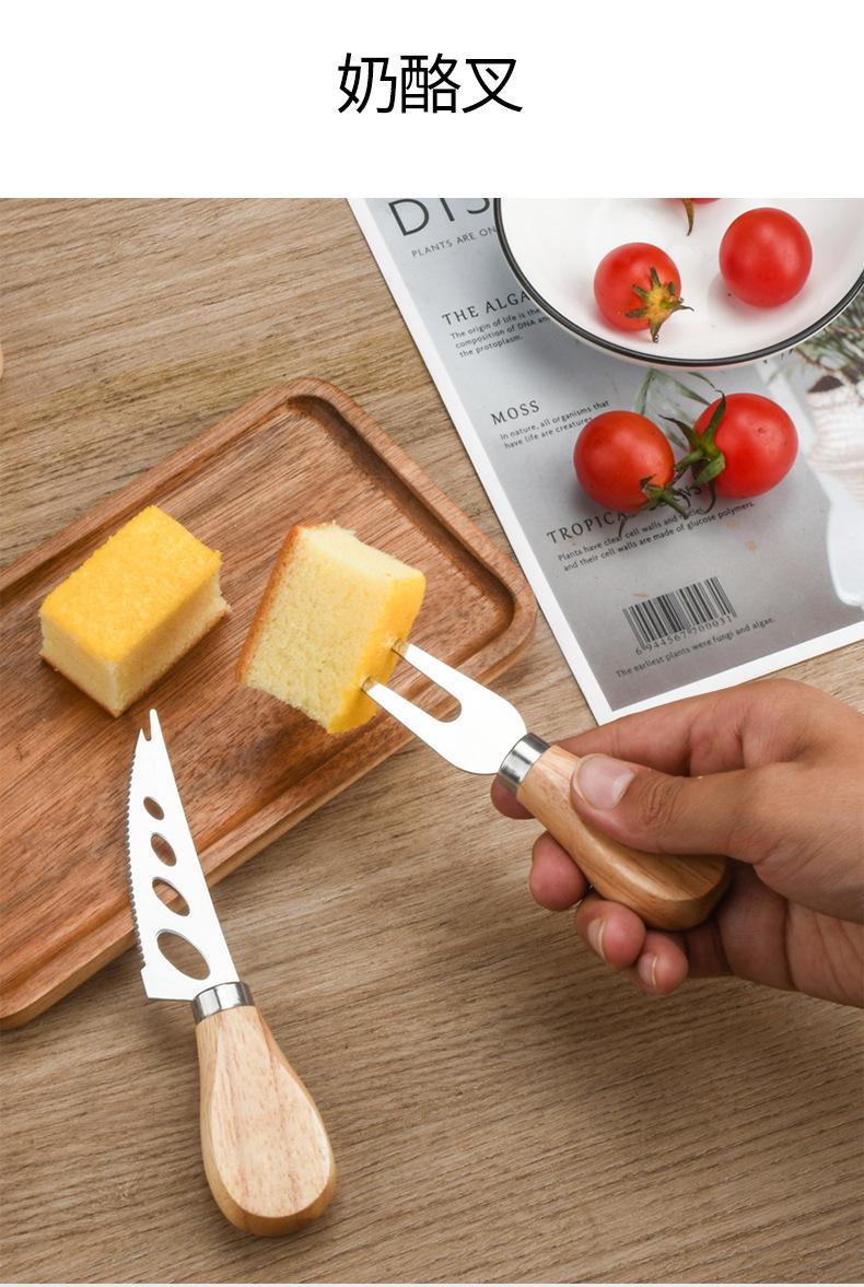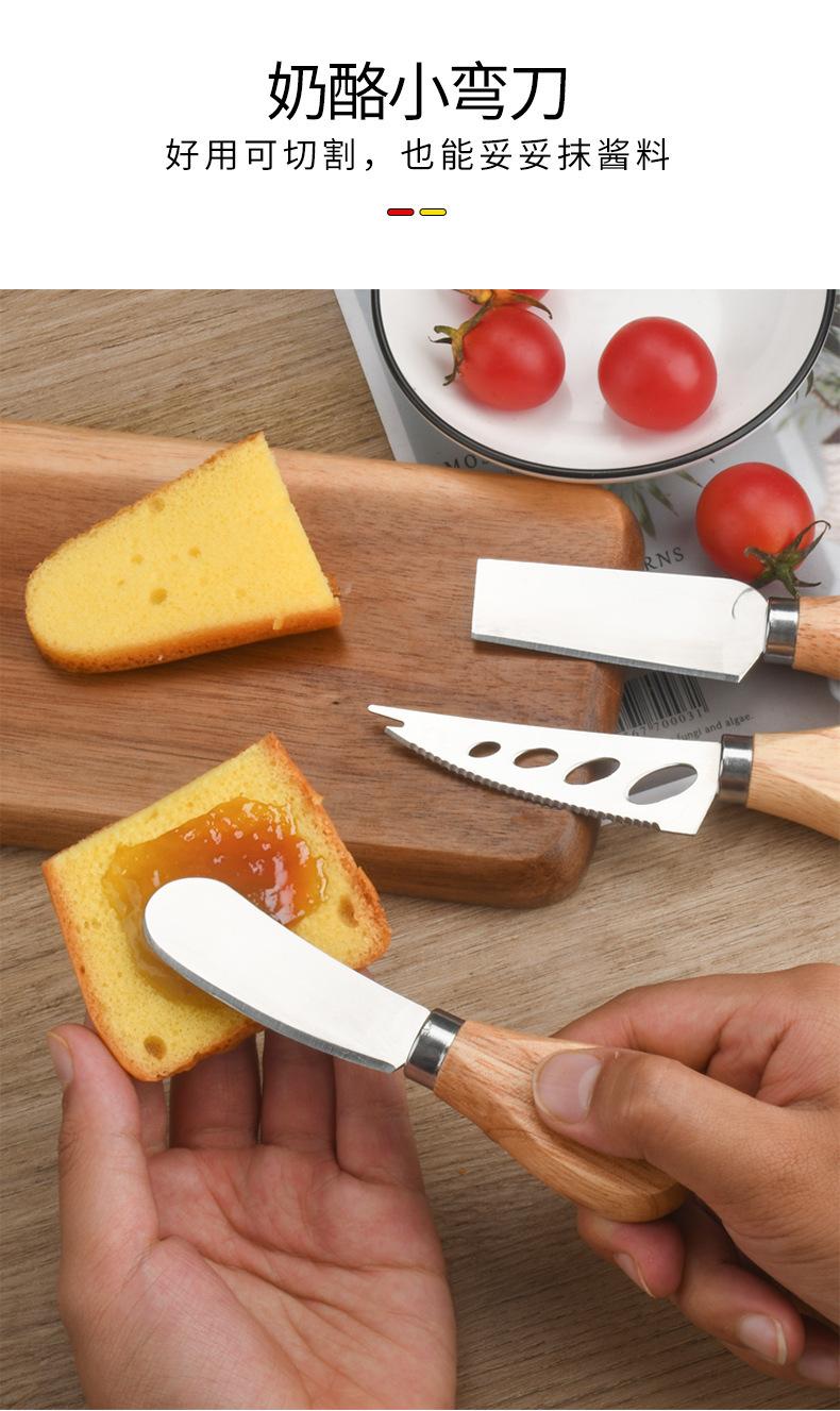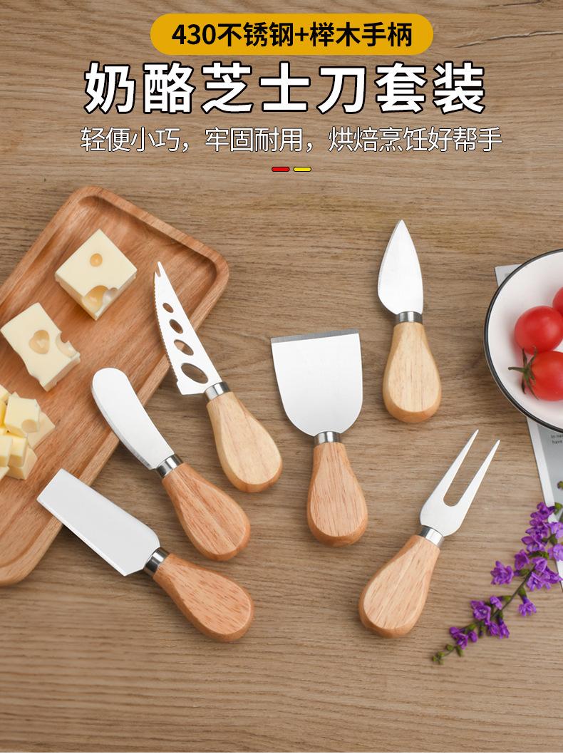 Six-piece cheese knife set, Cheese Fork, Flathead cheese knife, Pointed cheese knife, Cheese spatula, round he...