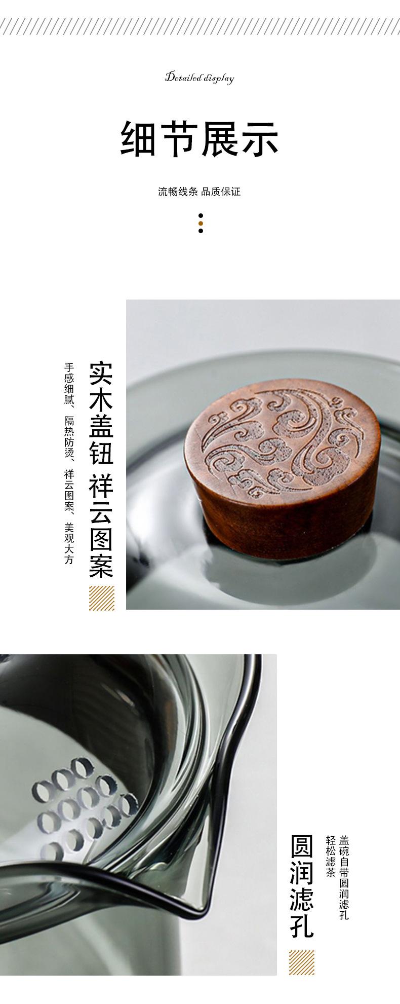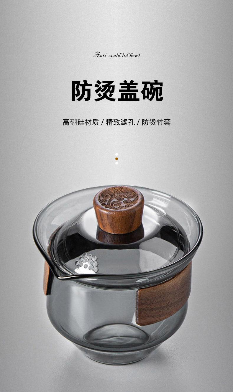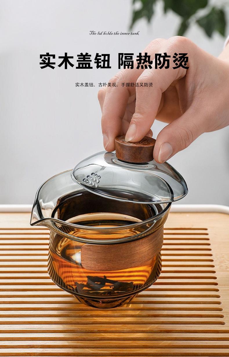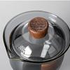 Juego de té de vidrio grueso resistente a altas temperaturas gris ahumado estilo lujo ligero grande Tazón con tapa taza de té anillo de madera tetera de mano