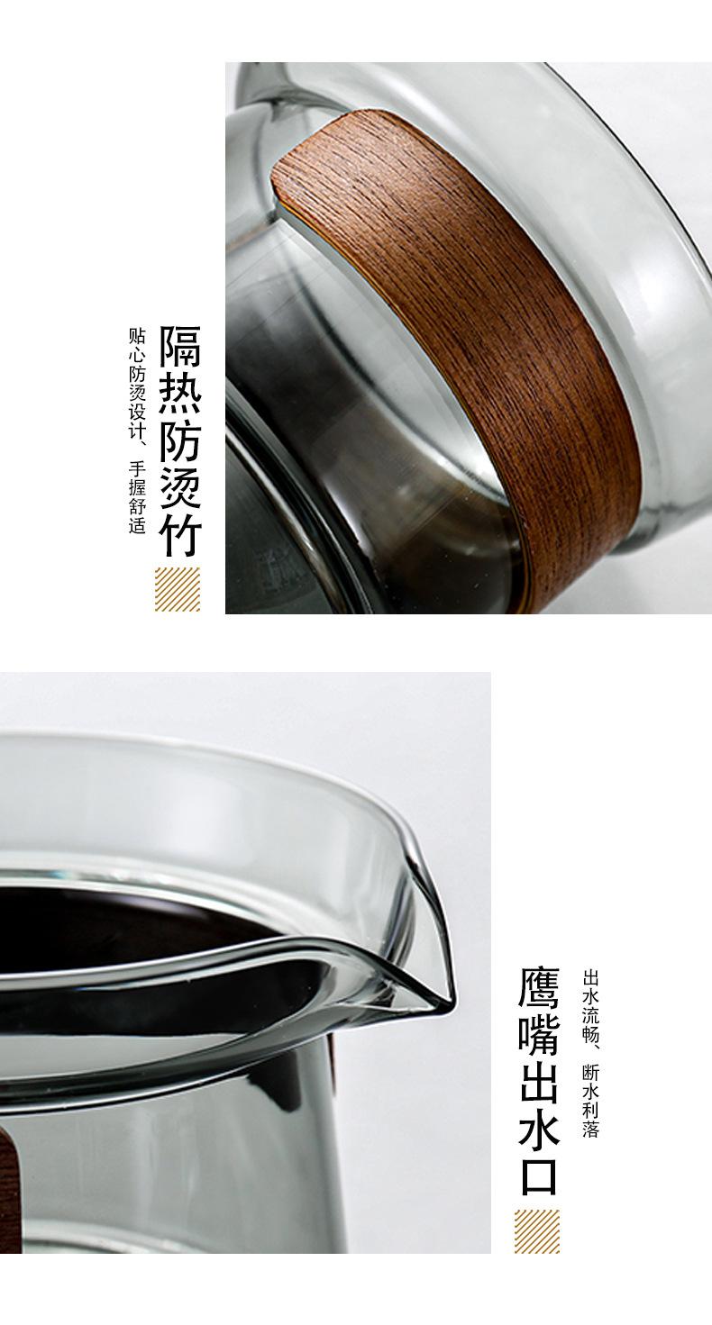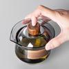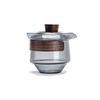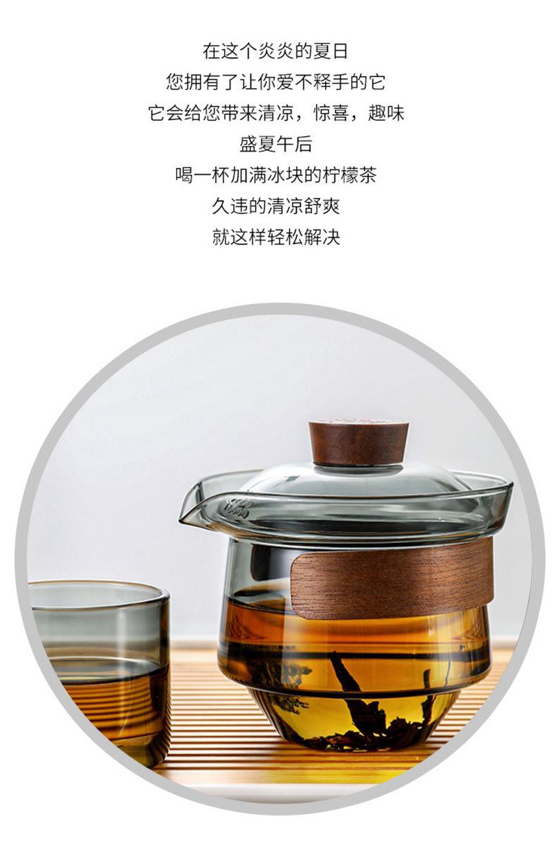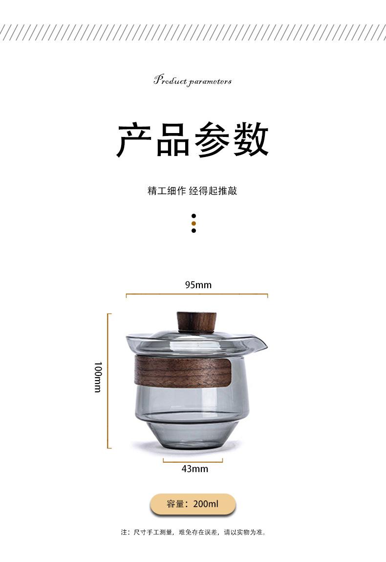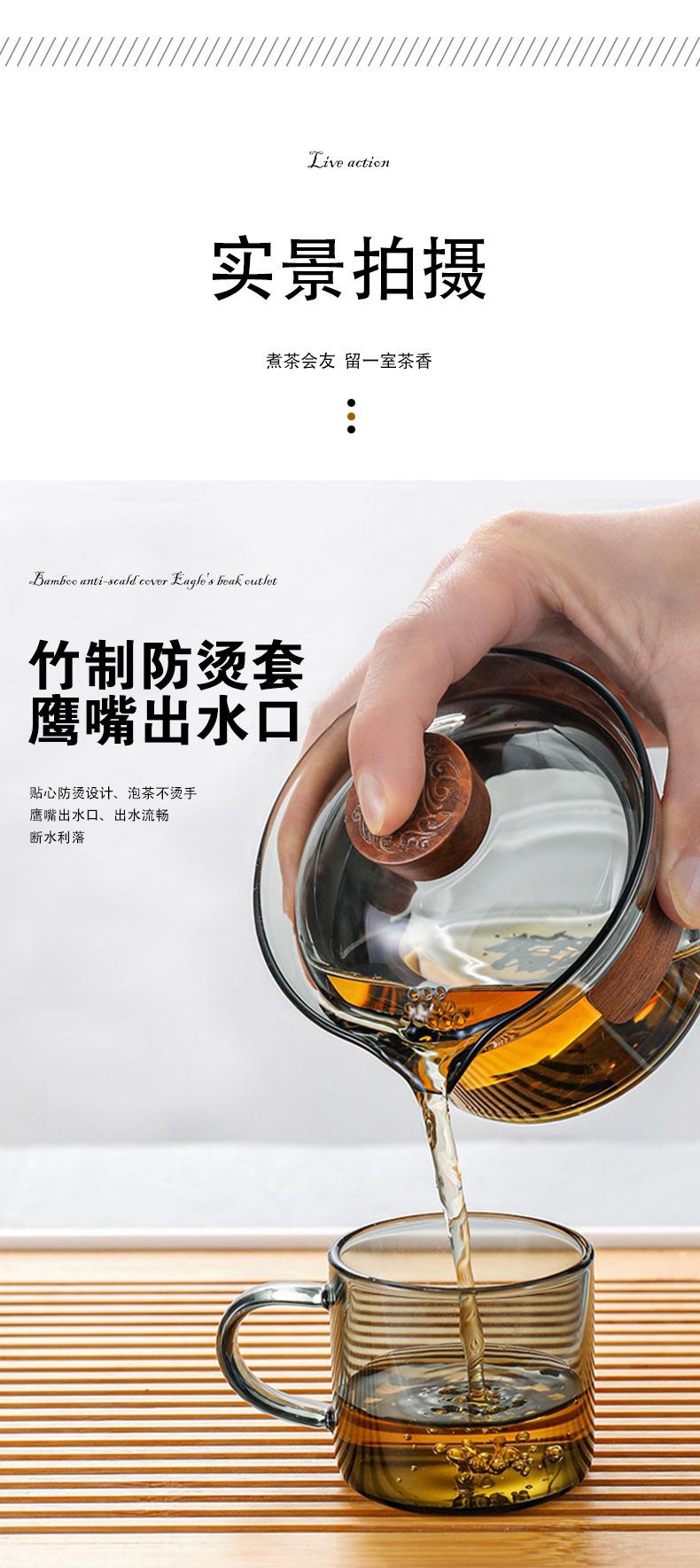 Juego de té de vidrio grueso resistente a altas temperaturas gris ahumado estilo lujo ligero grande Tazón con tapa taza de té anillo de madera tetera de mano