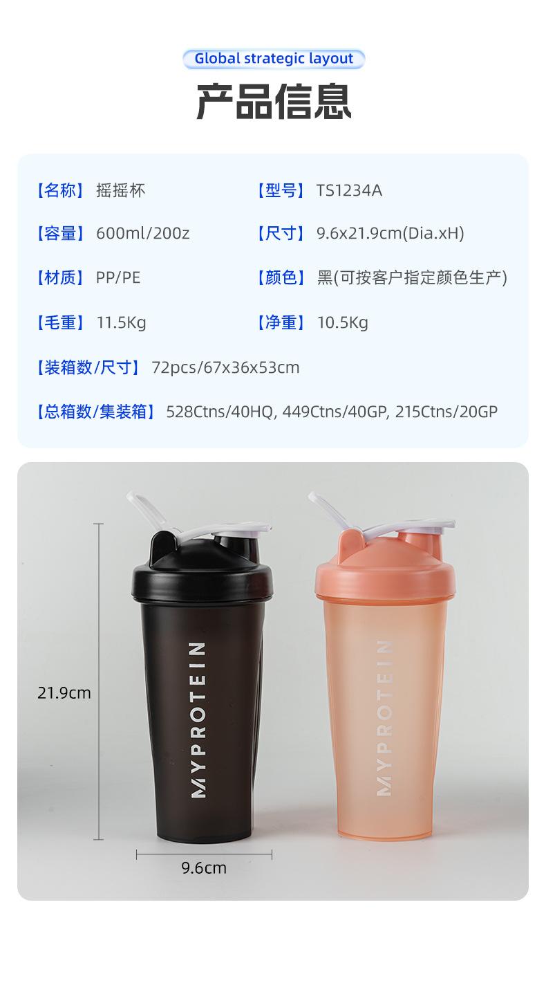 Vaso para batido antibacteriano de 600 ml, vaso mezclador de proteína en polvo para gimnasio con bola, vaso para batido con asa