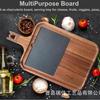 Tabla de cortar cuadrada de madera, tabla de cortar de cocina, tabla de cortar colgante, tabla de postres de frutas de escritorio, plato de pizza de carne de restaurante