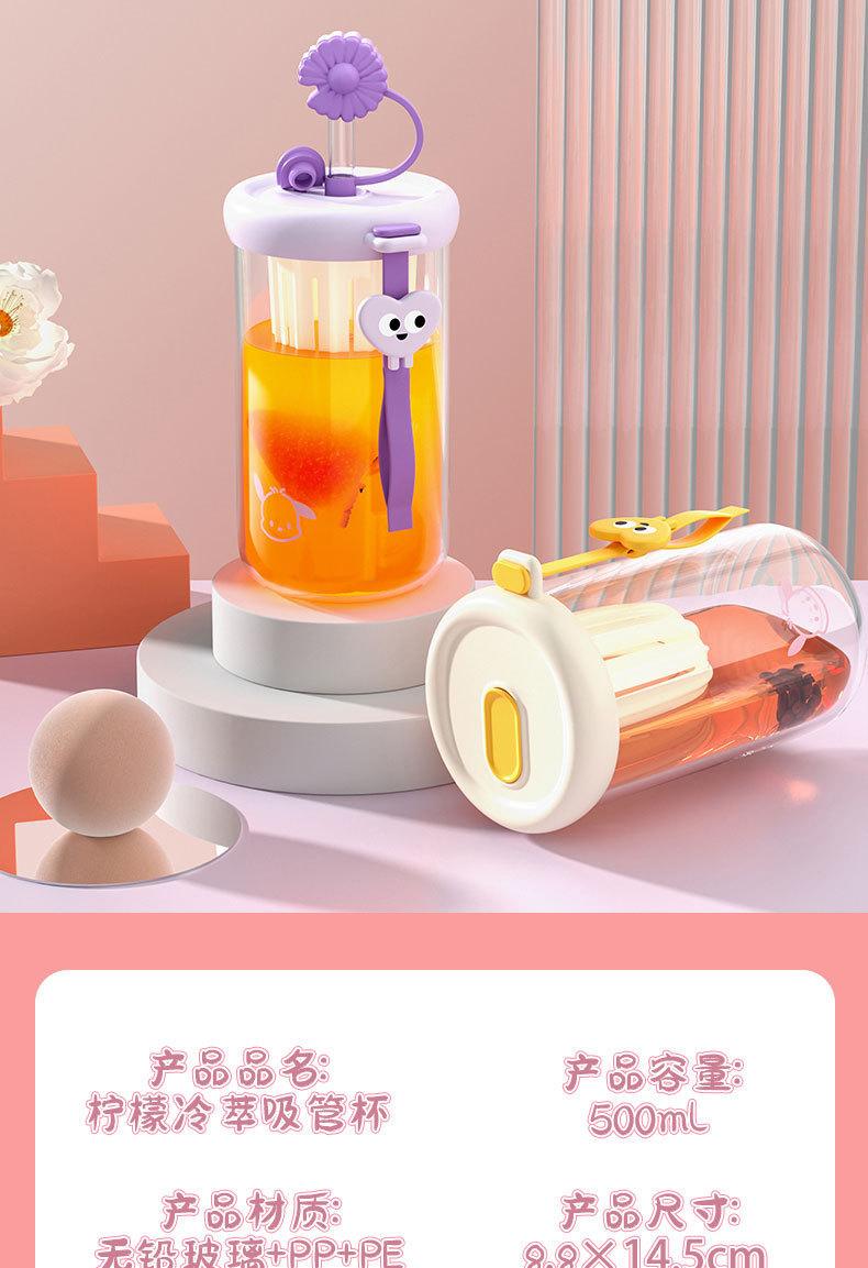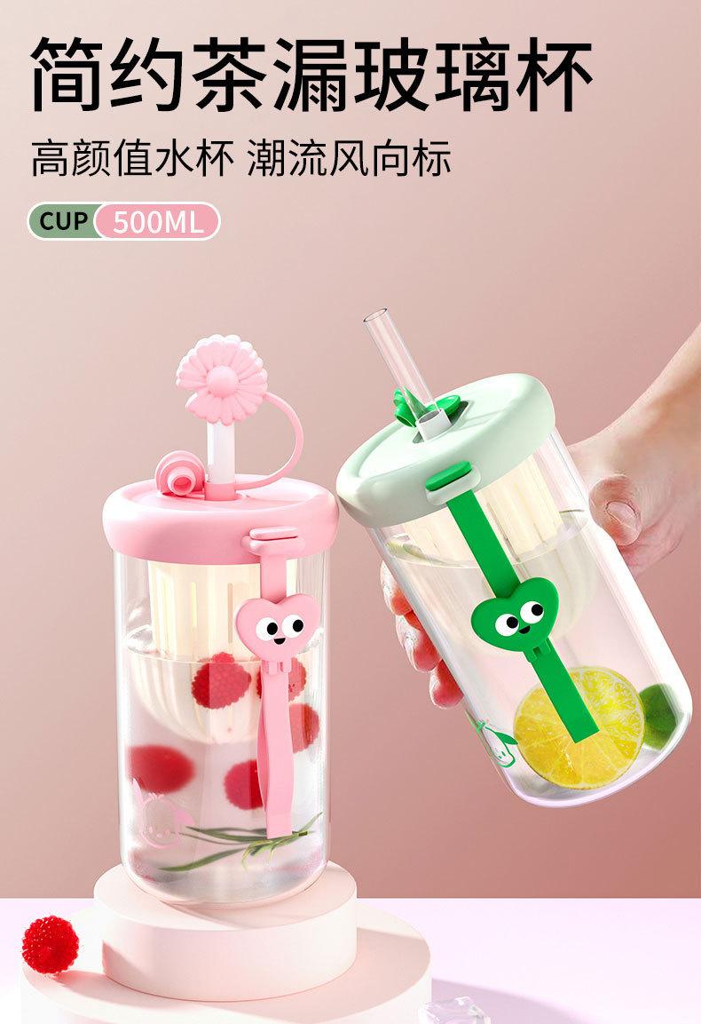 Lindo Vaso de Vidrio de Dibujos Animados para Separación de Té y Agua, Vaso con Pajita para Infusión Fría de Limón, Vaso Popular para Agua, Taza de Café Resistente a Altas Temperaturas