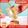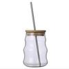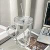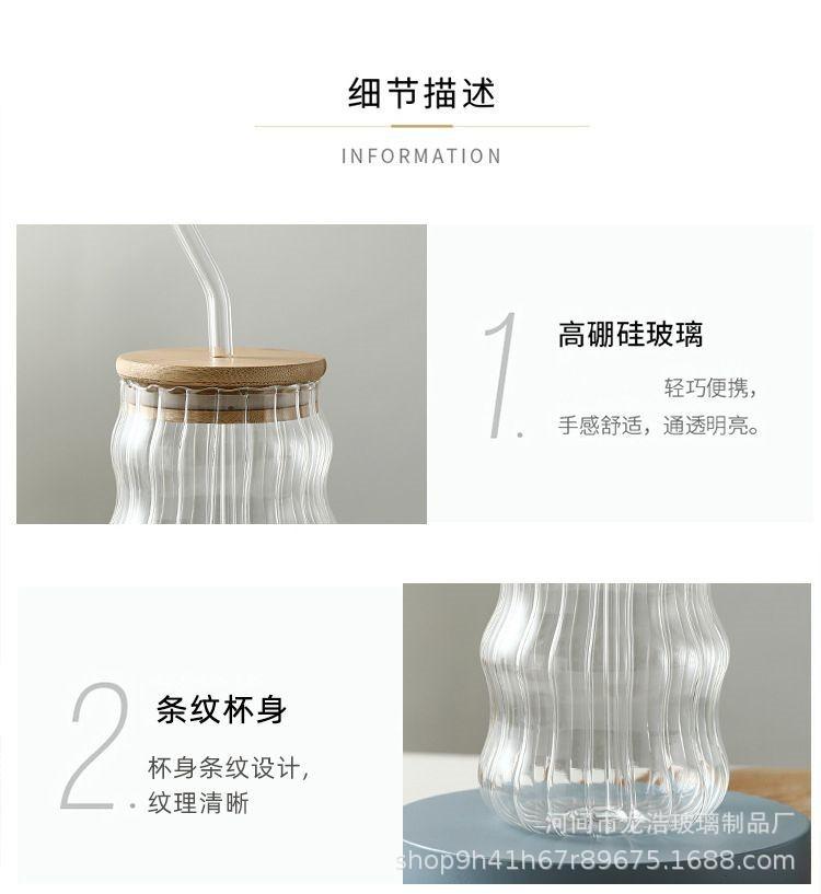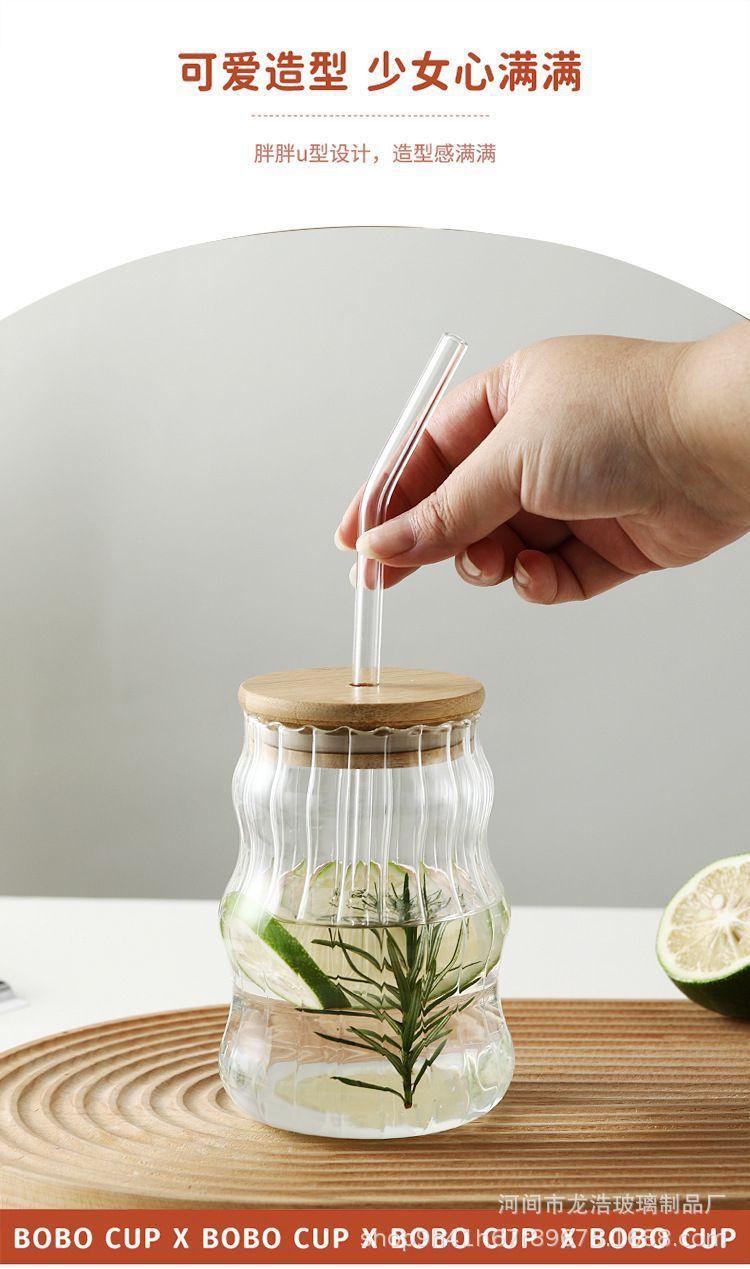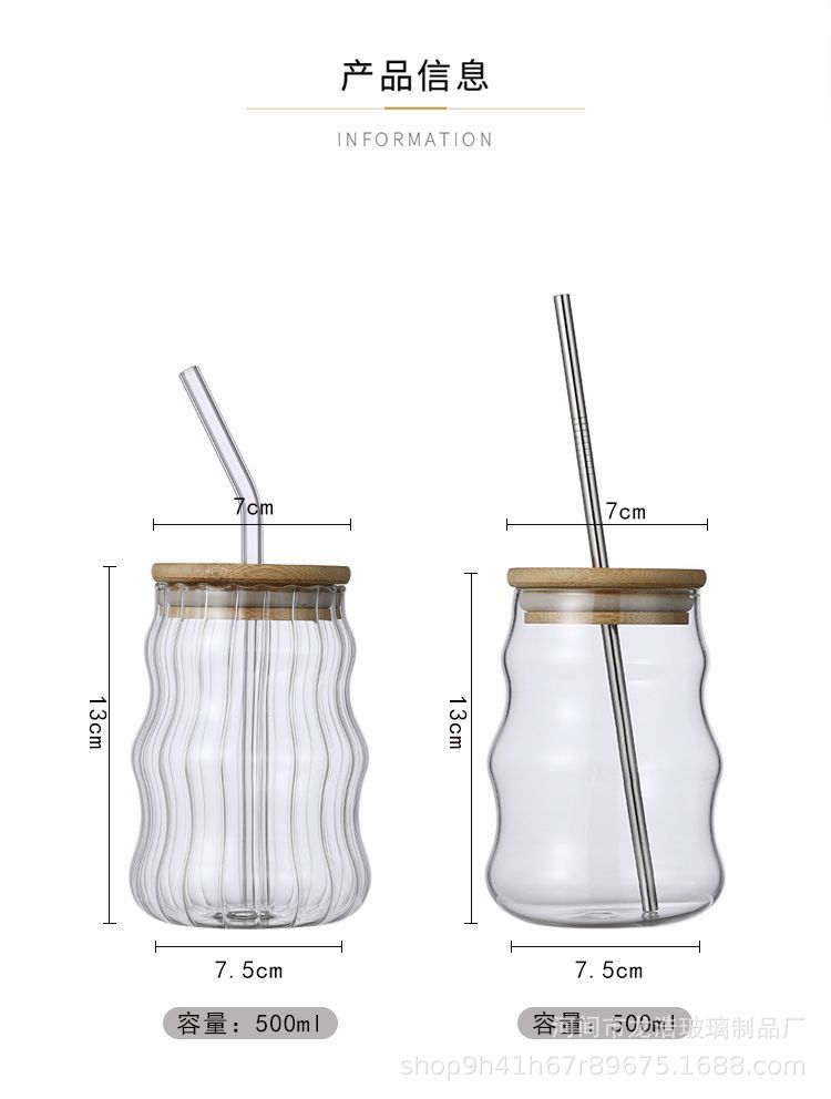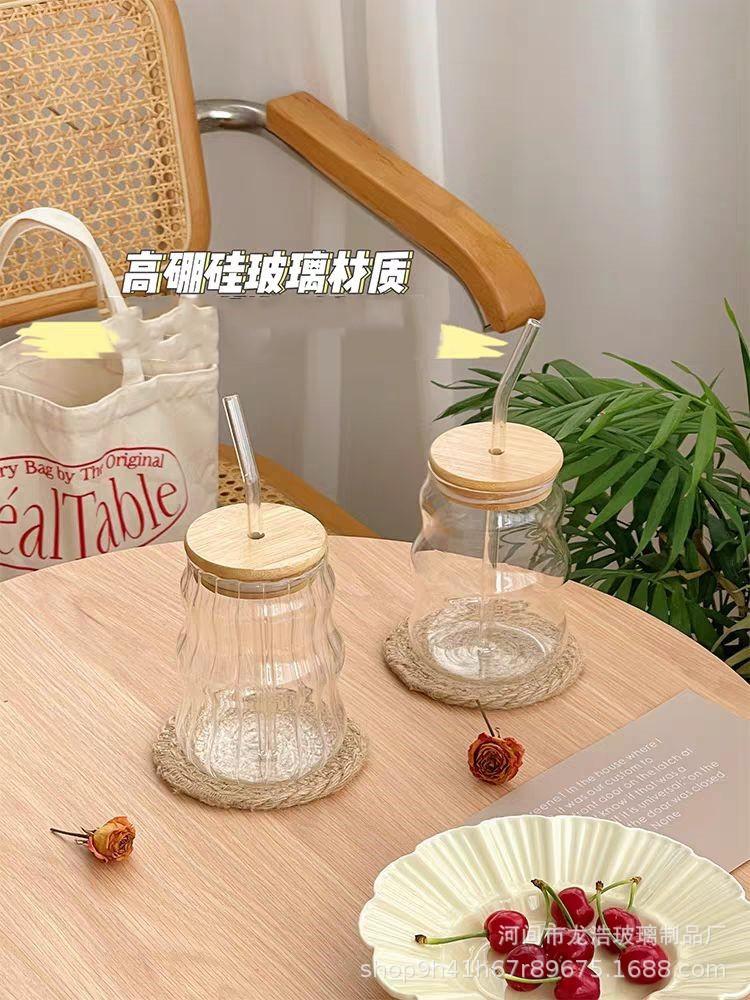 Taza de Café con Leche Transparente de Alto Valor de Color Estilo Ins, Taza Caterpillar de Gran Capacidad con Tapa y Popote, Vaso de Vidrio con Grano Vertical