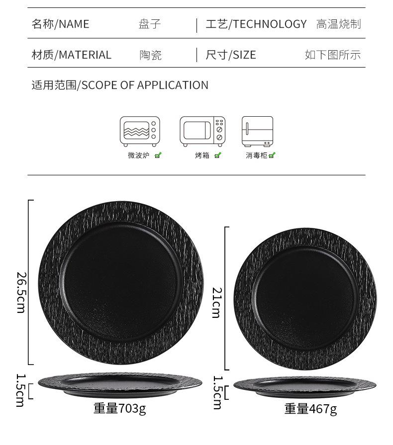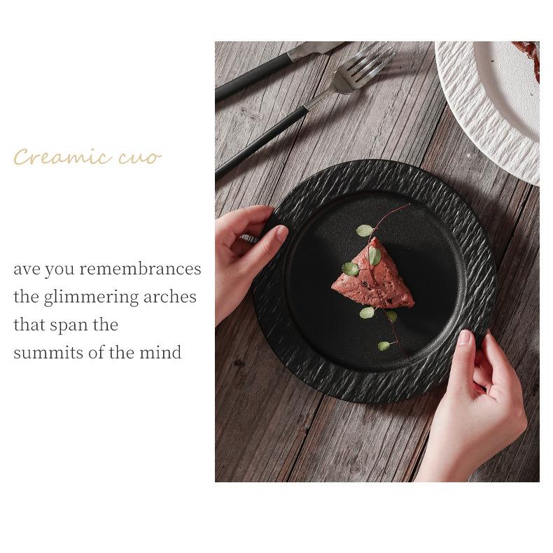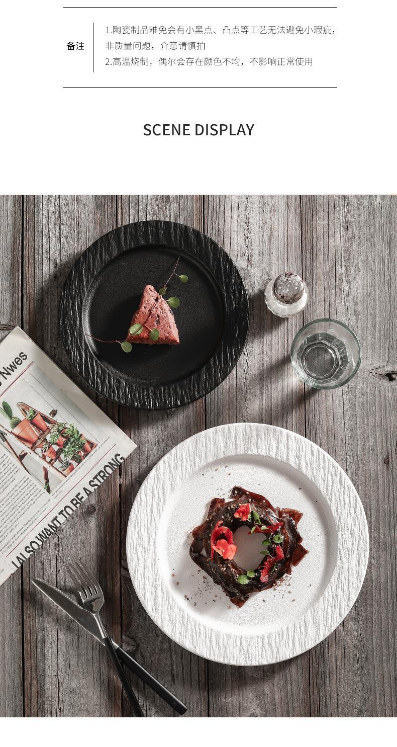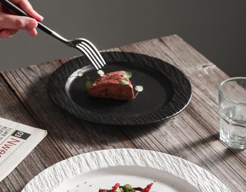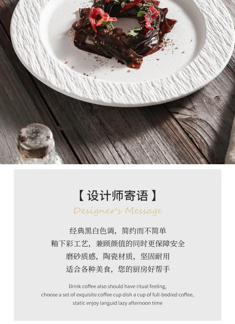 Plato de carne de restaurante, plato occidental, plato blanco doméstico, plato plano de pasta para desayuno de lujo ligero y de alta calidad.