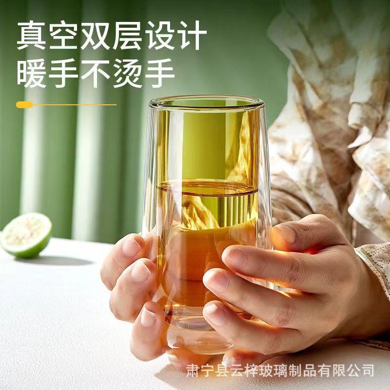 Taza de vacío de vidrio resistente al calor, aislamiento térmico de doble capa, taza de té verde de oficina, taza de leche, taza de agua transparente para el hogar, traje