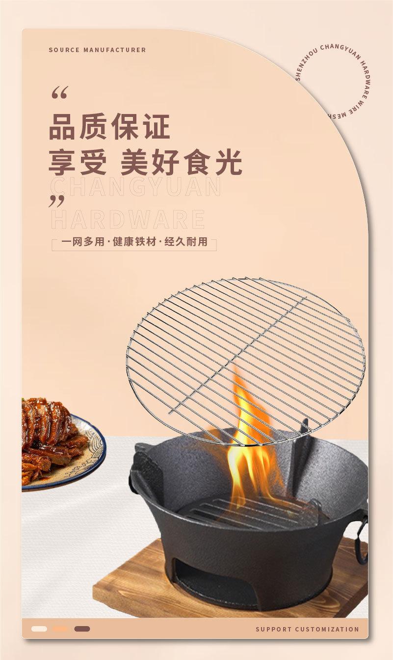 Venta al por mayor del fabricante productos de malla de alambre de ferretería redonda material de hierro acero inoxidable para exteriores camping barbacoa red para el hogar alrededor de la estufa