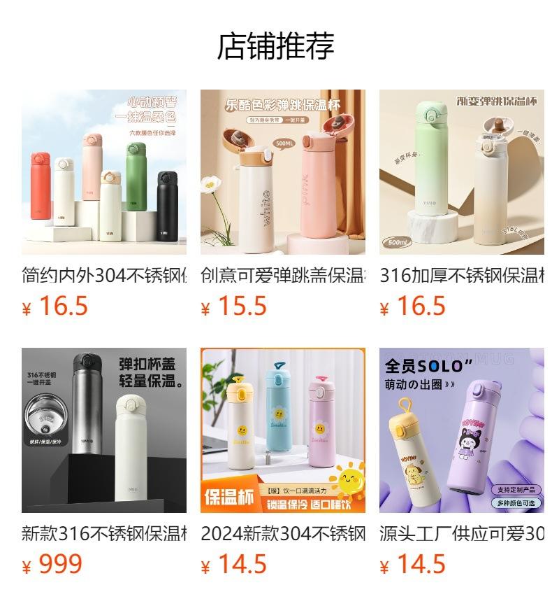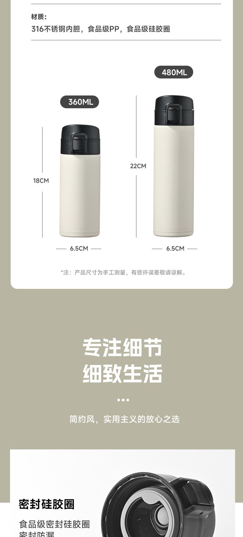 Termo de acero inoxidable 316 con tapa de resorte, taza de agua creativa y sencilla para oficina, portátil, con tapa abierta, para coche, venta al por mayor