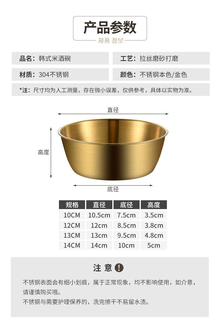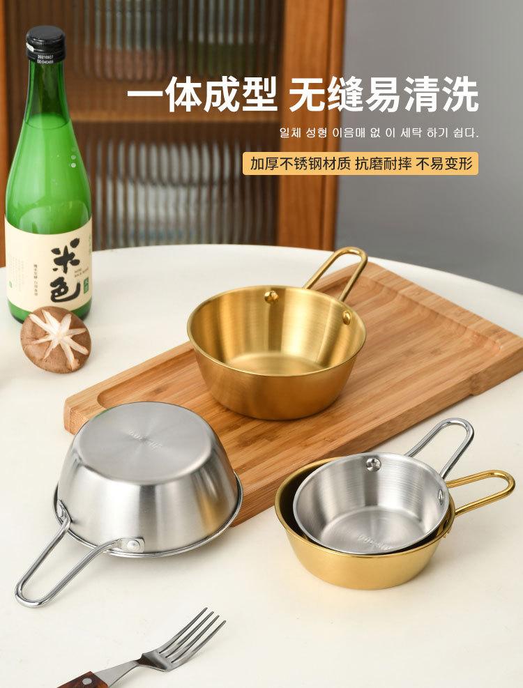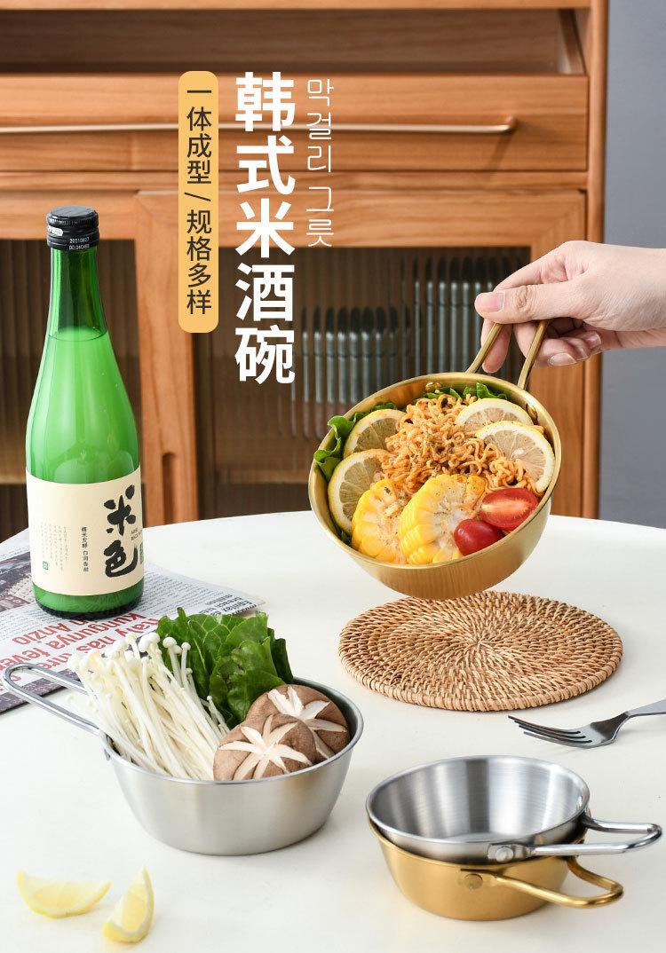 Cuenco de arroz coreano de acero inoxidable 304 con asa para vino de arroz, condimentos, agua caliente y fría, ideal para restaurantes.