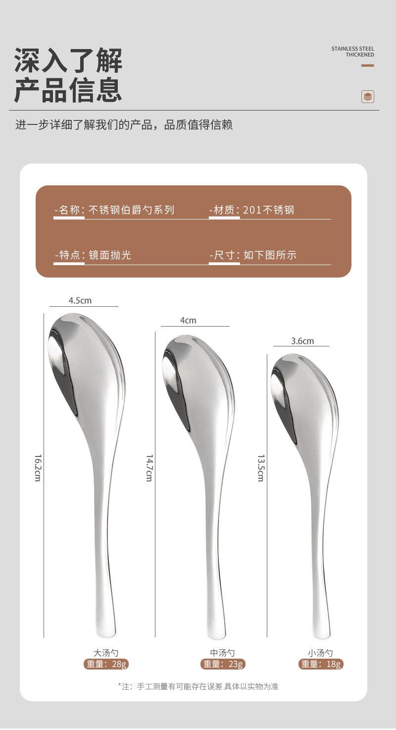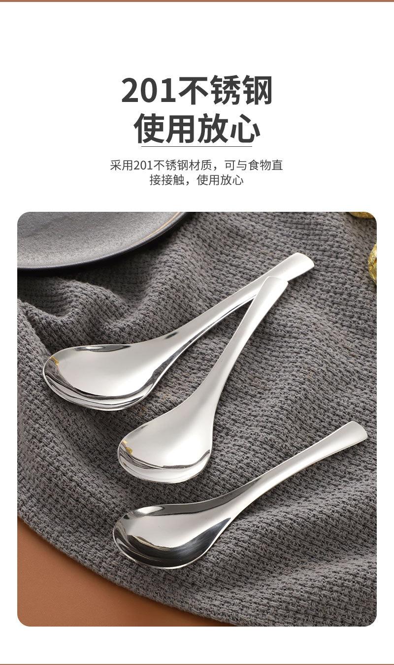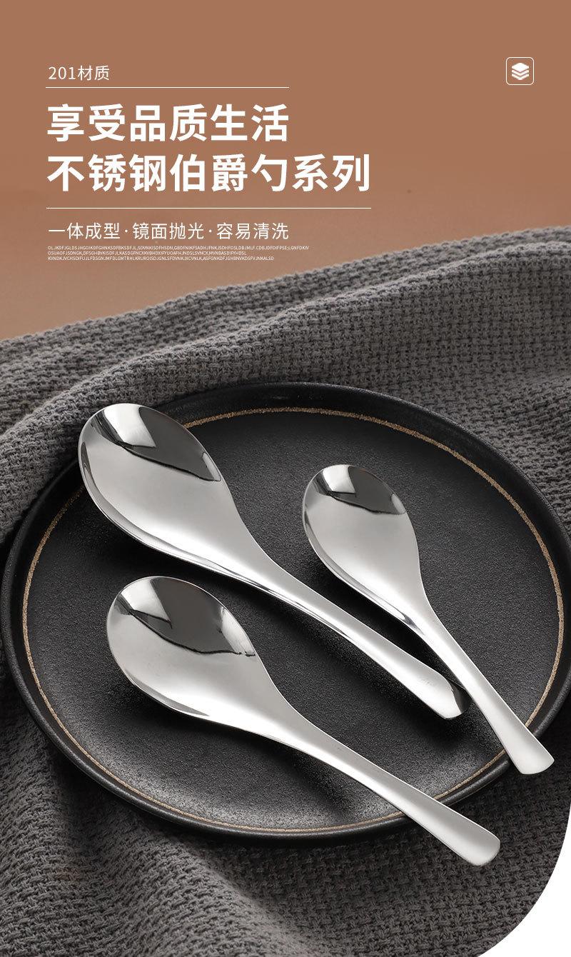 Cuchara de acero inoxidable 201, cuchara para sopa, cuchara para comer, cuchara para el conde, cuchara para la corte, cuchara redonda sencilla para la cocina del hotel o el hogar.