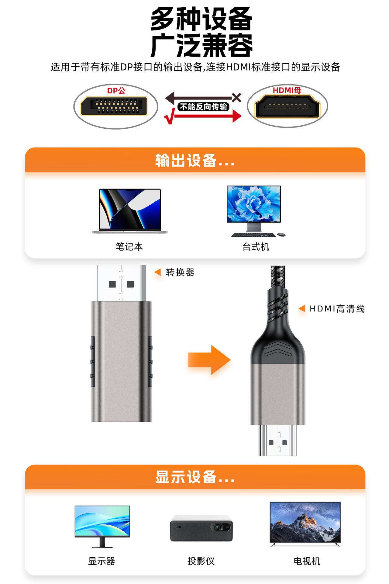 Adaptador DP a HDMI hembra convertidor 4K HD tarjeta gráfica computadora conectado a TV proyector monitor cable de video