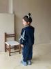 Otoño 2024 nueva ropa infantil, ropa coreana para niñas, abrigo con capucha y lazo, pantalones casuales, traje para niñas