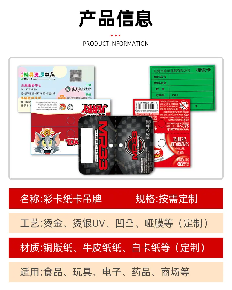 Impresión de Tarjetas de Color Tarjeta de Papel Personalización de Tarjetas Empaque de Tarjetas Tarjeta Plegable Tarjeta Colgante Tarjeta de Garantía Tarjeta Colgante de Cabeza Personalización