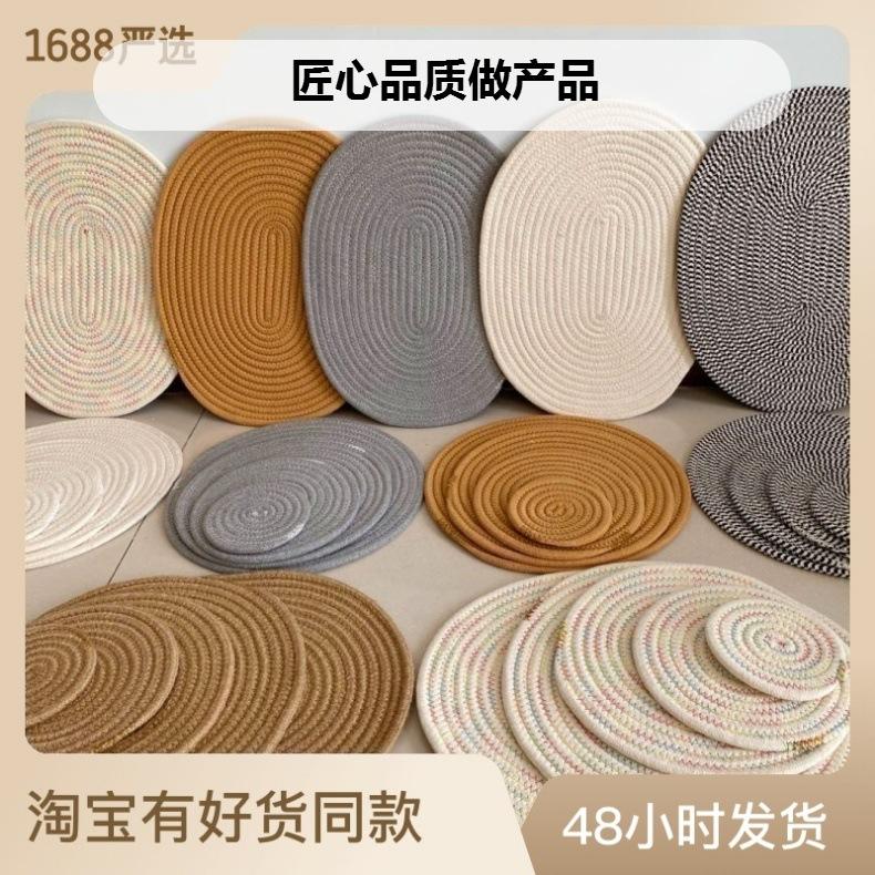 Ventas Directas de Fábrica Posavasos Escandinavos Simples de Cuerda de Algodón Tejidos a Mano Almohadillas de Aislamiento Engrosadas Manteles Individuales Tejidos a Mano