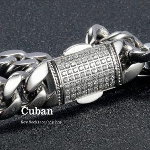 Collar de cadena cubana europea y americana hiphop hombres y mujeres tendencia ins hip-hop acero de titanio con incrustaciones de diamantes no se desvanece estilo grueso de alta calle