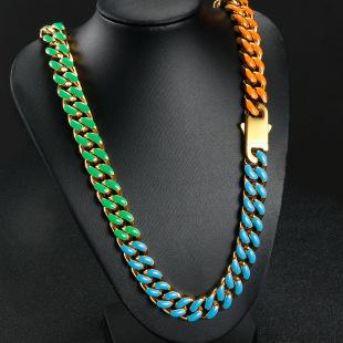 Collar de acero inoxidable con aceite goteando de color de personalidad hip-hop, nuevo transfronterizo europeo y americano, cadena cubana con pegamento goteando, collar de acero de titanio para hombre