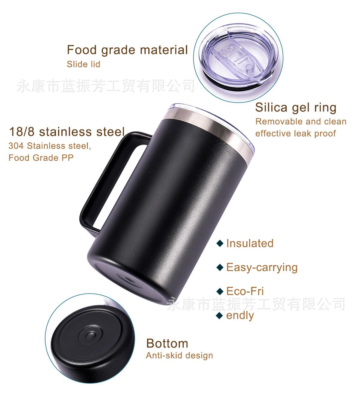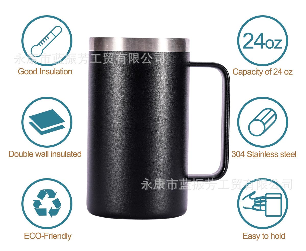 Vaso de hielo Cross-Border de 20 oz con asa de acero inoxidable 304, taza para coche, gran capacidad, para café frío de oficina