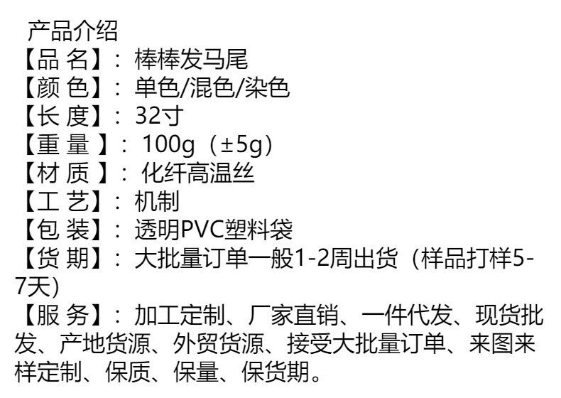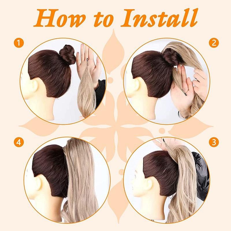 Peluca de Fibra Química Europea y Americana Transfronteriza de Comercio Exterior 32 pulgadas Cabello en Palito Cola de Caballo Envoltura Alrededor Extensiones de Cabello Peluca Cola de Caballo Popular