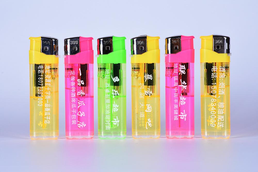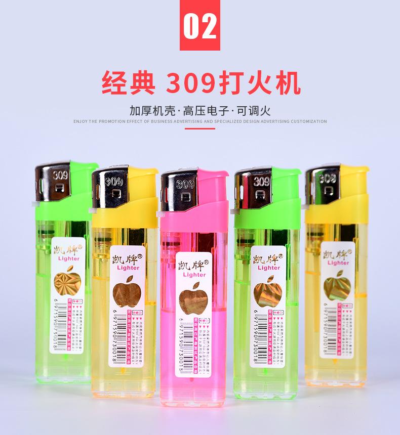 Fábrica directa de Shaodong 309 encendedor desechable encendedor publicitario impresión plástico encendedor abierto puesto venta al por mayor