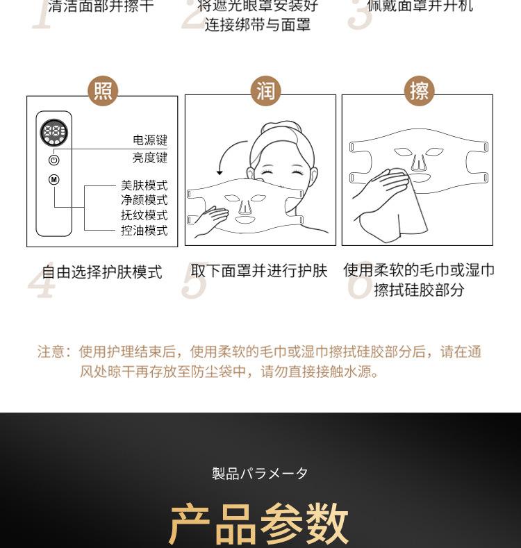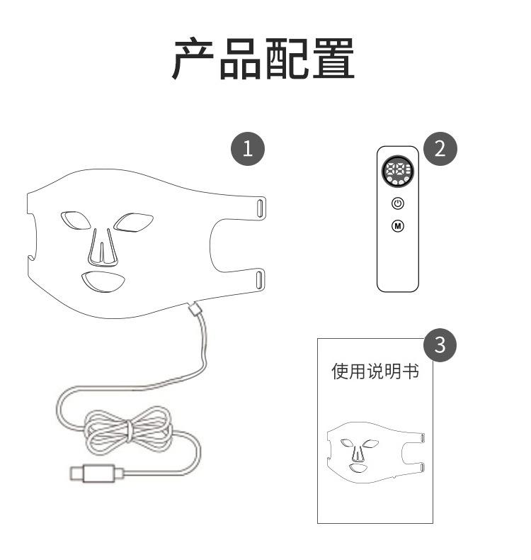 Instrumento Máscara de Fotones para la Belleza de la Piel Máscara de Silicona Negra Rostro Luz de Color Lámpara de Fila Grande Instrumento de Belleza LED Blanqueamiento