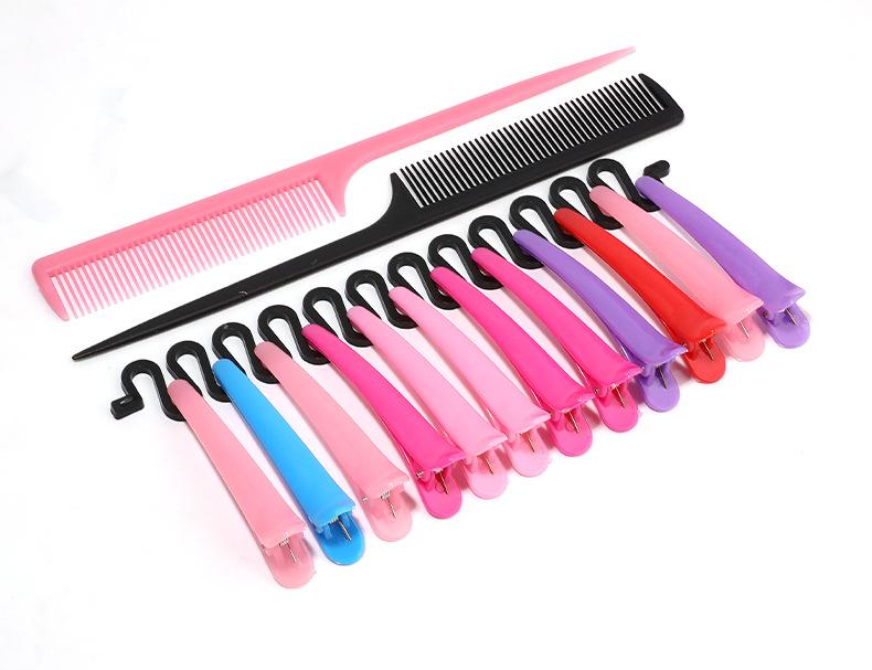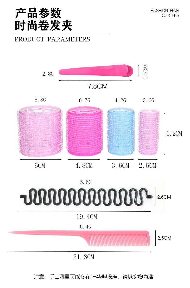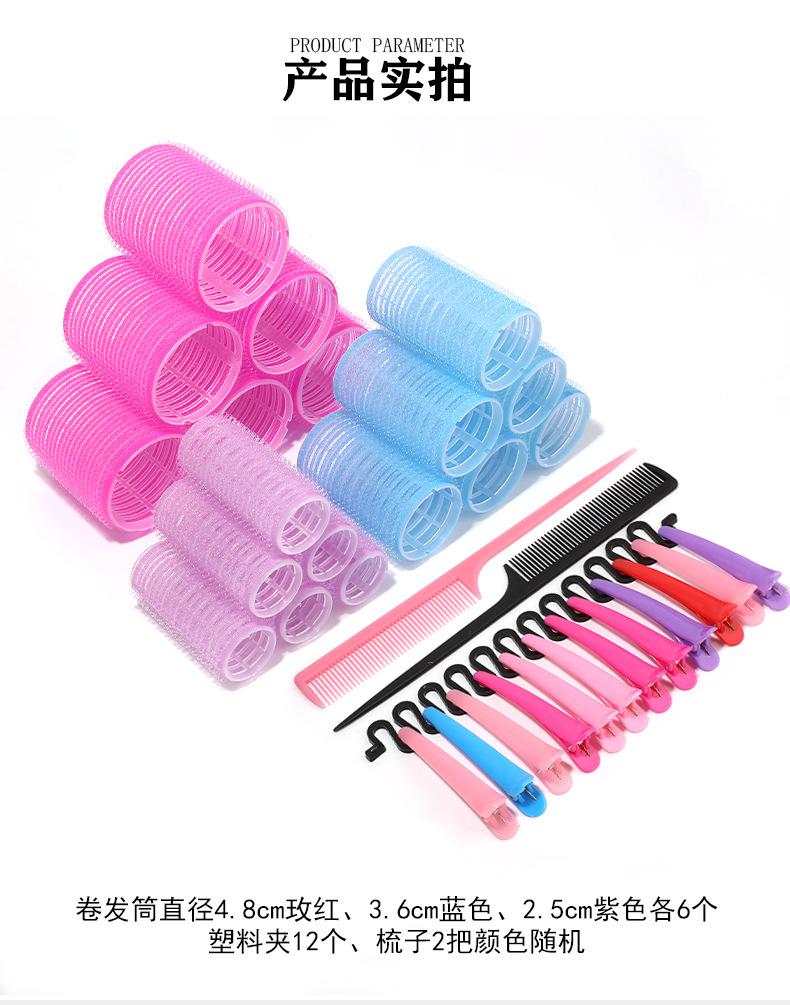 Bagged transparent hair curler (4.8 Rose Red +3.6 blue +2.5 purple) 6 groups +12 plastic clips +2 Combs +1 hai...