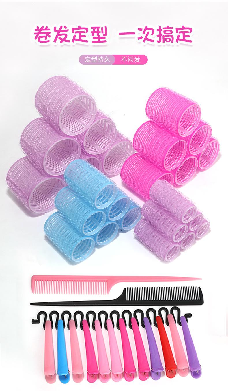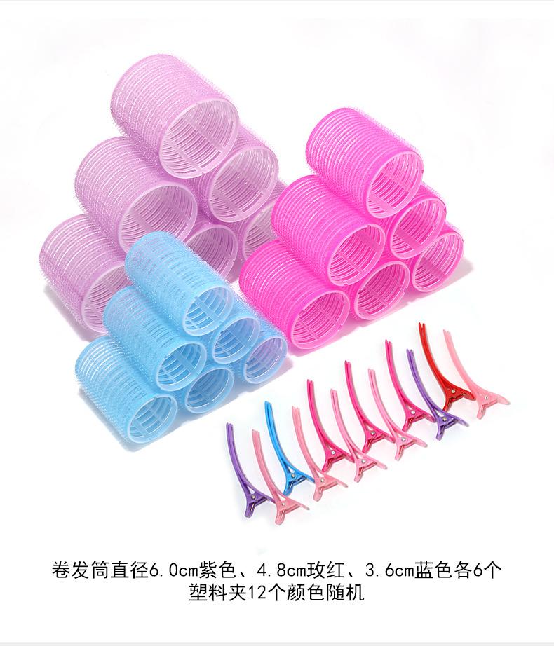 Bagged transparent hair curler (6.0 purple +4.8 rose +3.6 blue) 6 groups +12 plastic clips