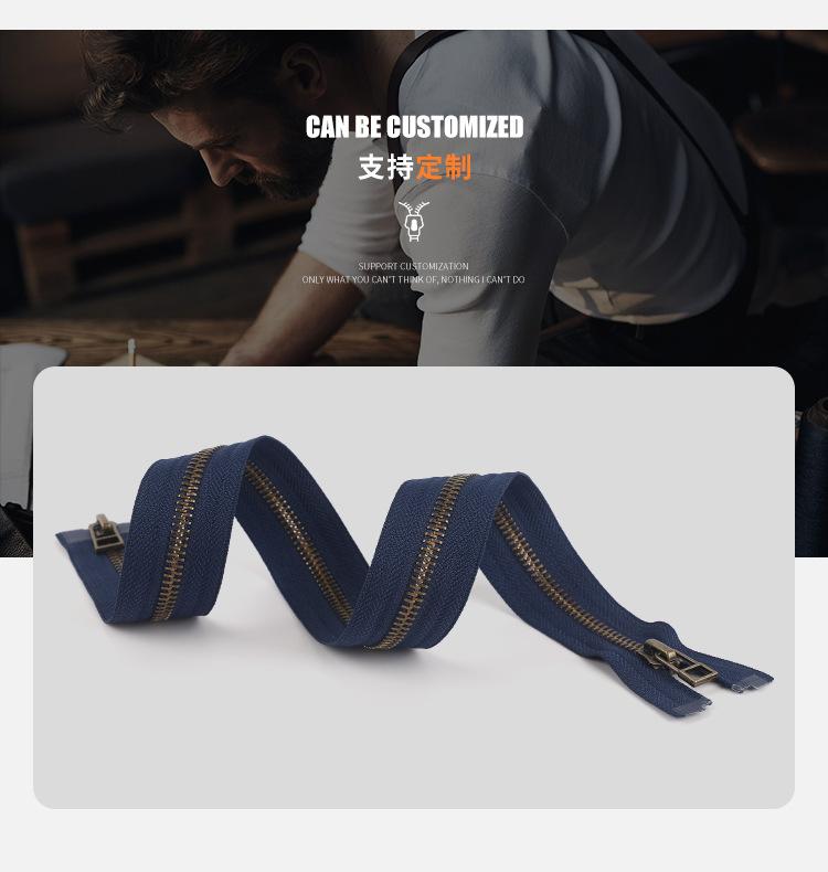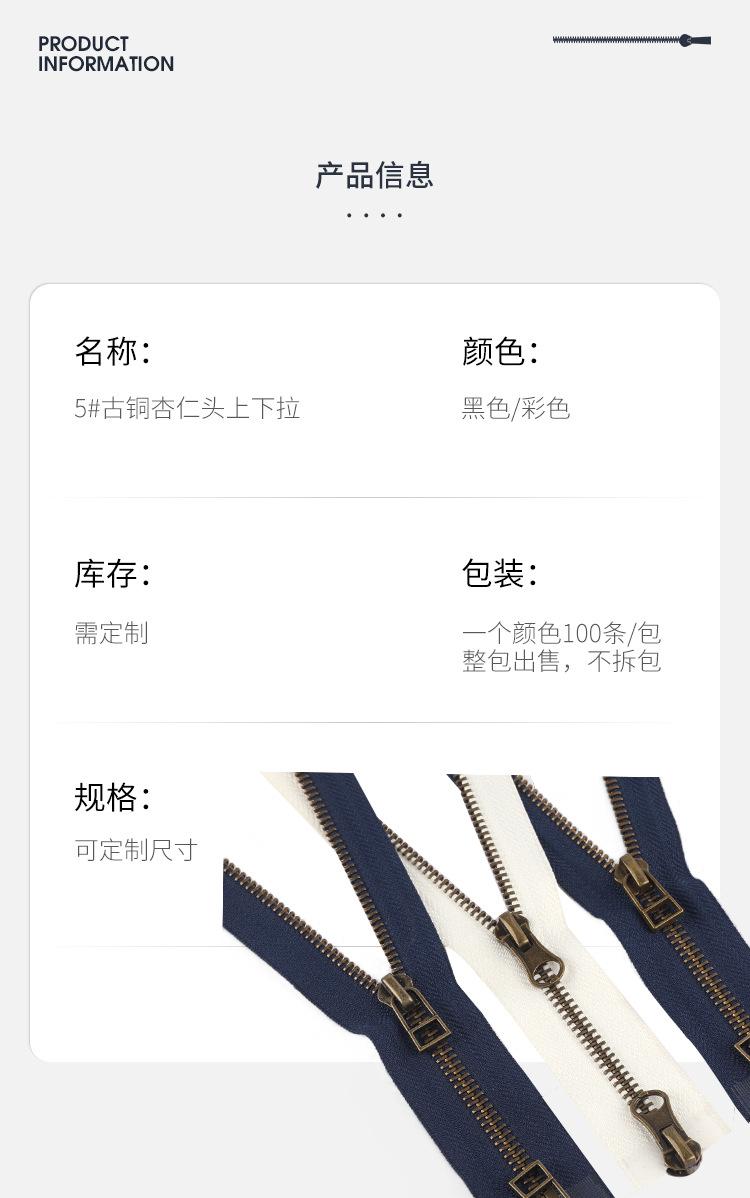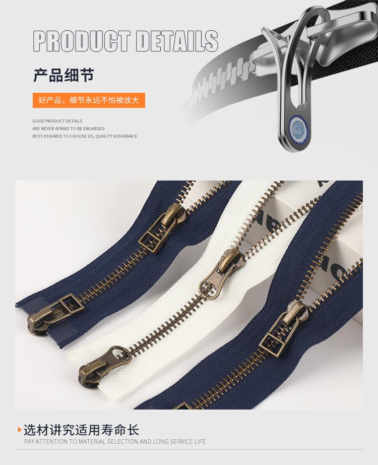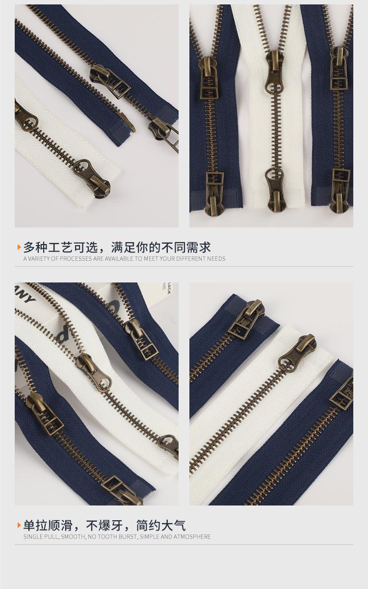 Cremallera superior e inferior de metal bronce almendrado Cremallera para ropa Cremallera deslizante autoblocante Cremallera para equipaje de jeans