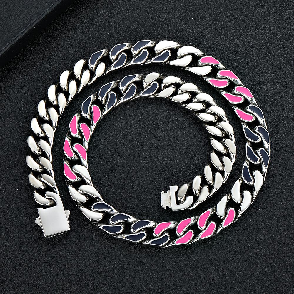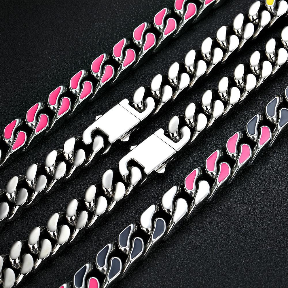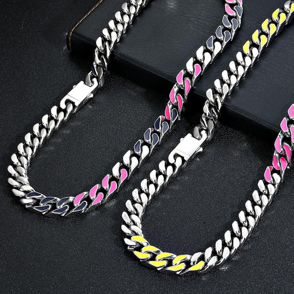 Collar de Moda Europeo y Americano Joyería Acero Titanio Colorido Estilo Ins Cadena Cubana Acero Inoxidable Nicho Hip-Hop Joyería para Mujer Venta al por Mayor