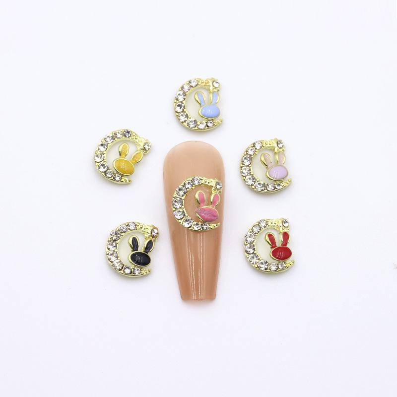 Joyería para decoración de uñas, nueva aleación de estrella y luna, diamantes de imitación para decoración de uñas, accesorios de joyería, aceite de conejo para uñas, venta al por mayor