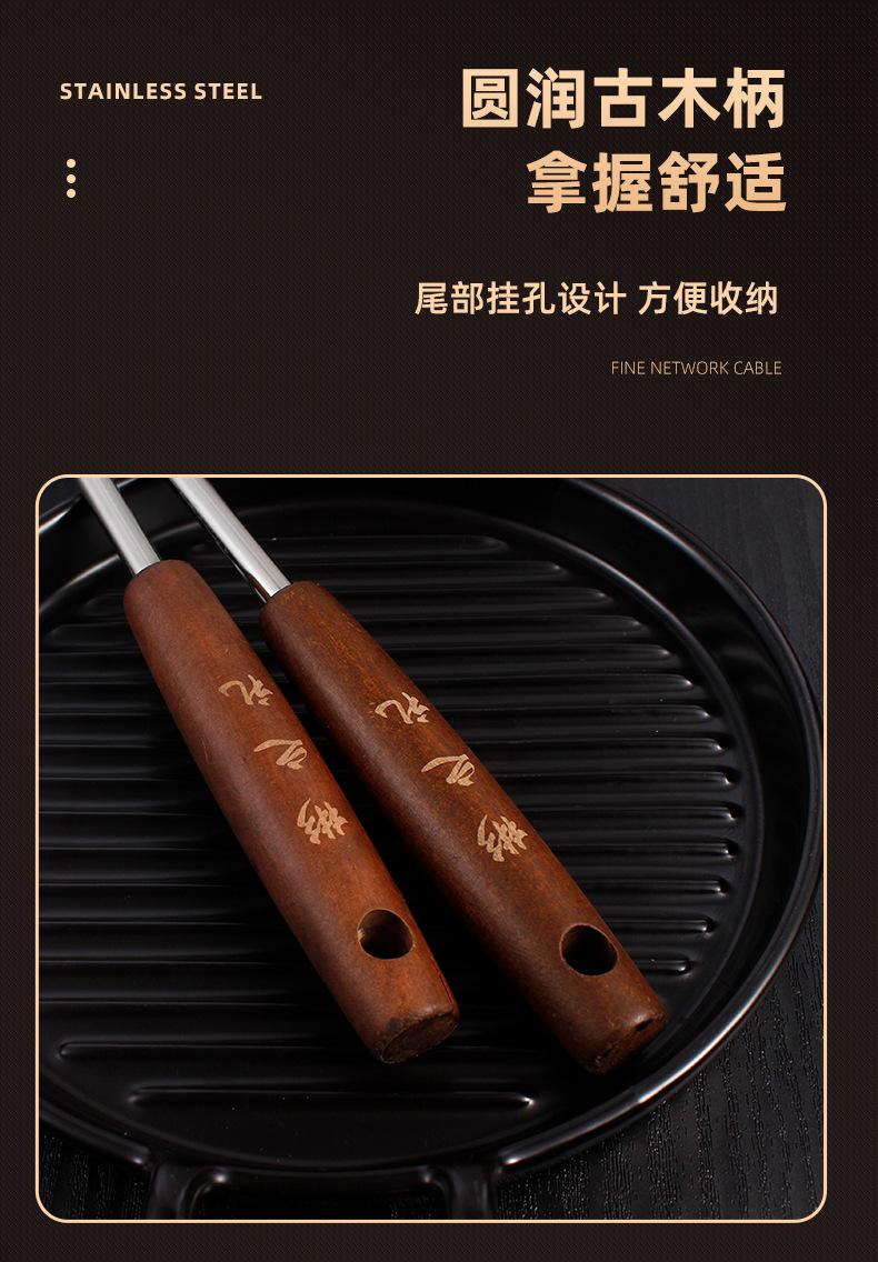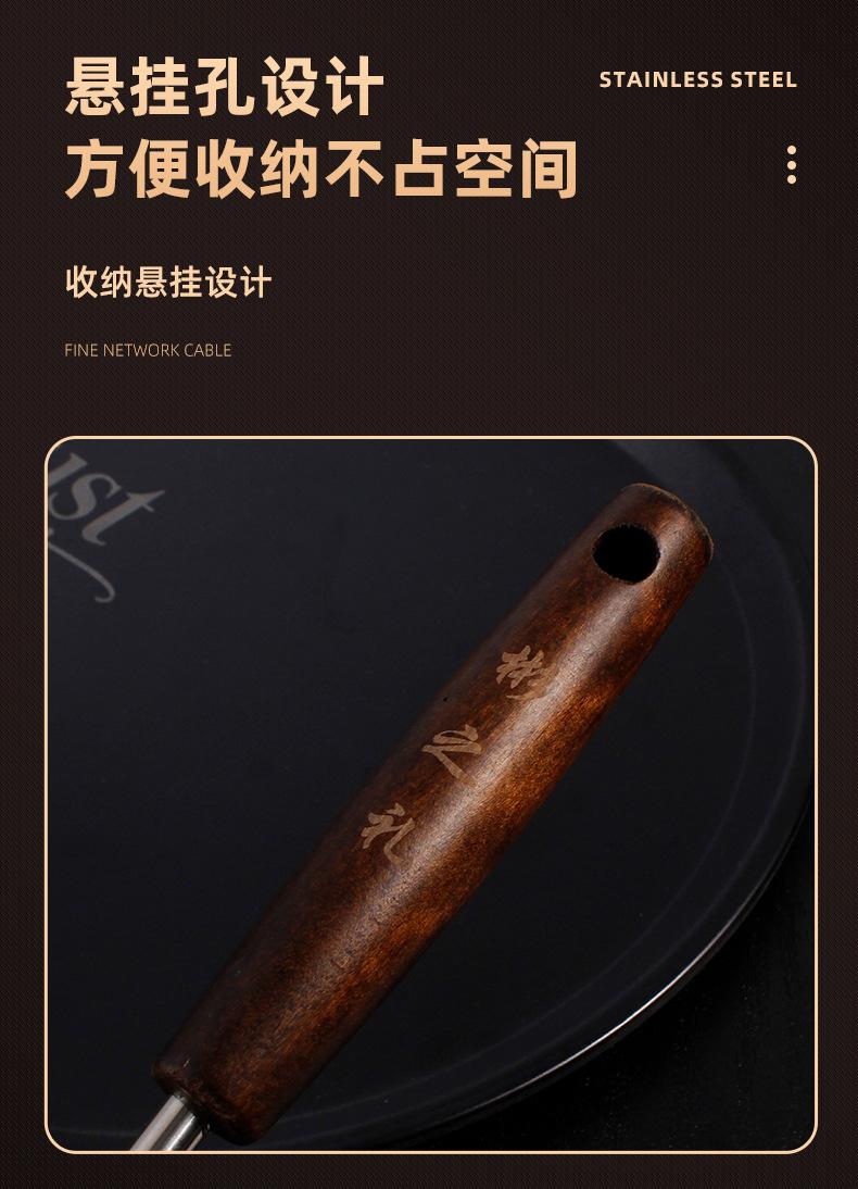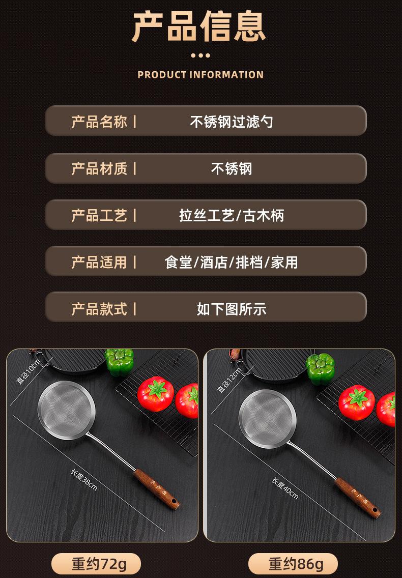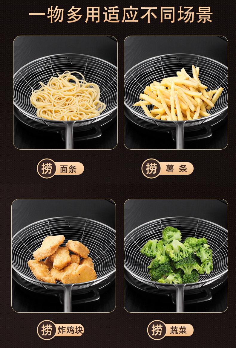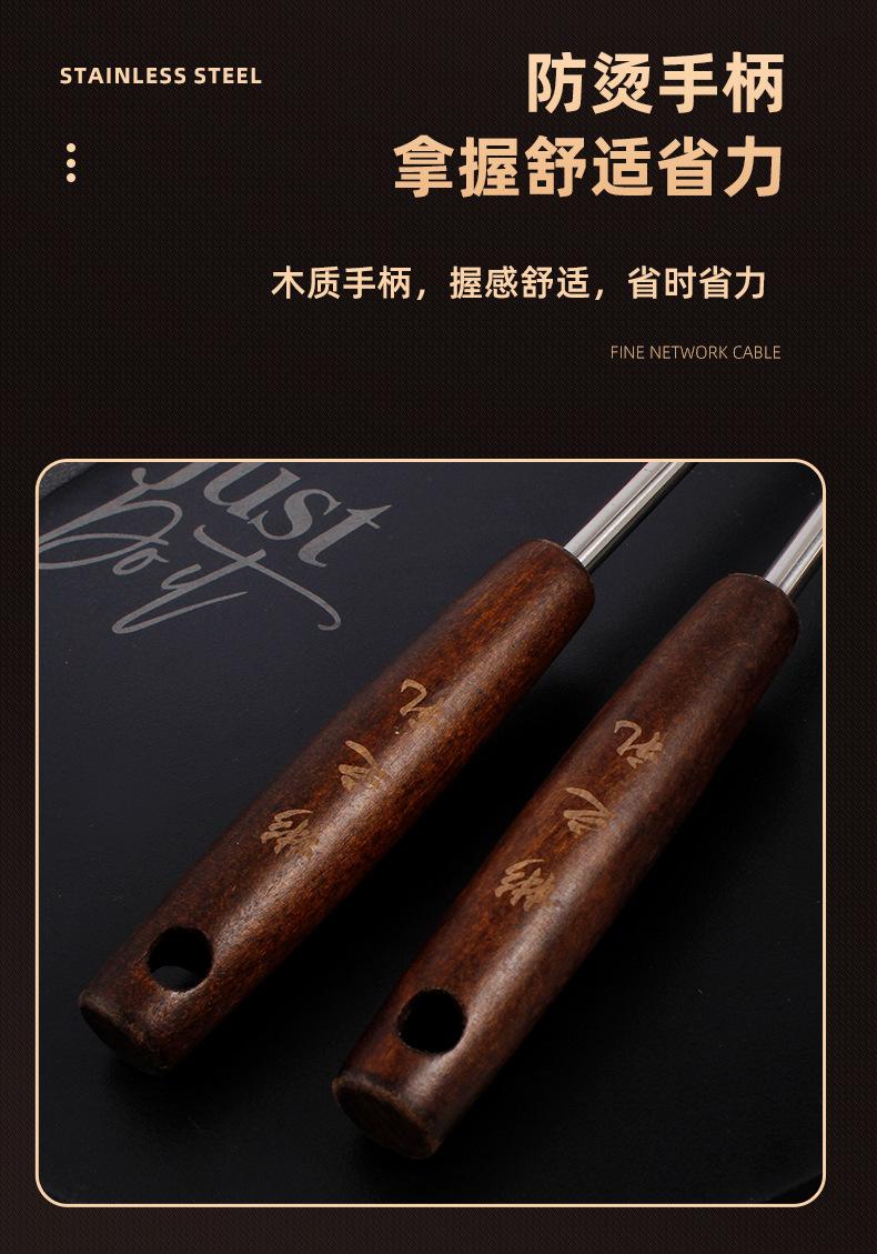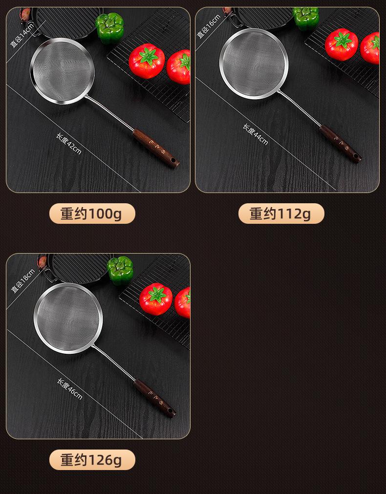 Colador de acero inoxidable con mango de madera retro, colador de línea, colador frito, colador grande para el hogar, colador de red para ollas calientes, salida de fábrica