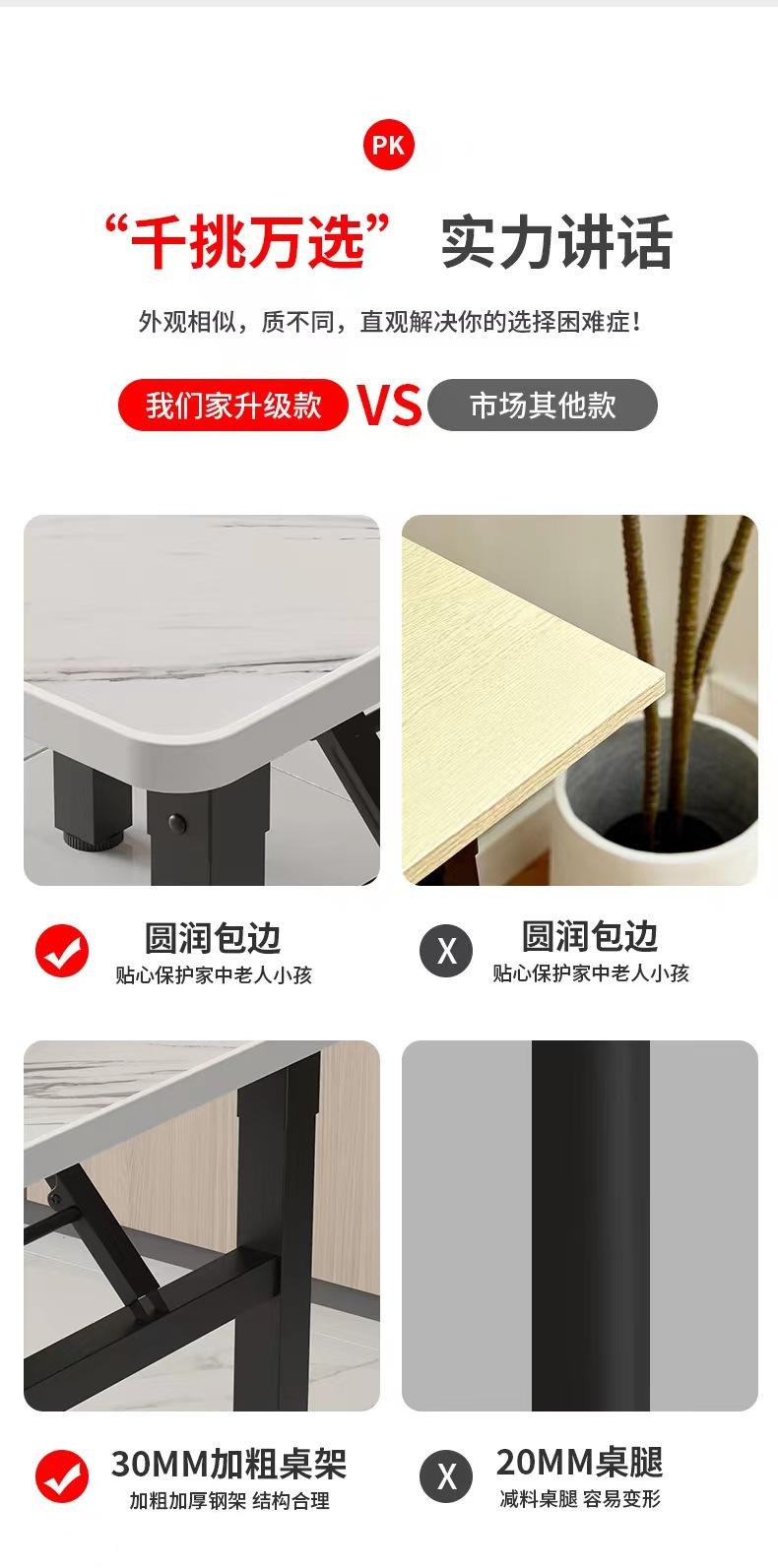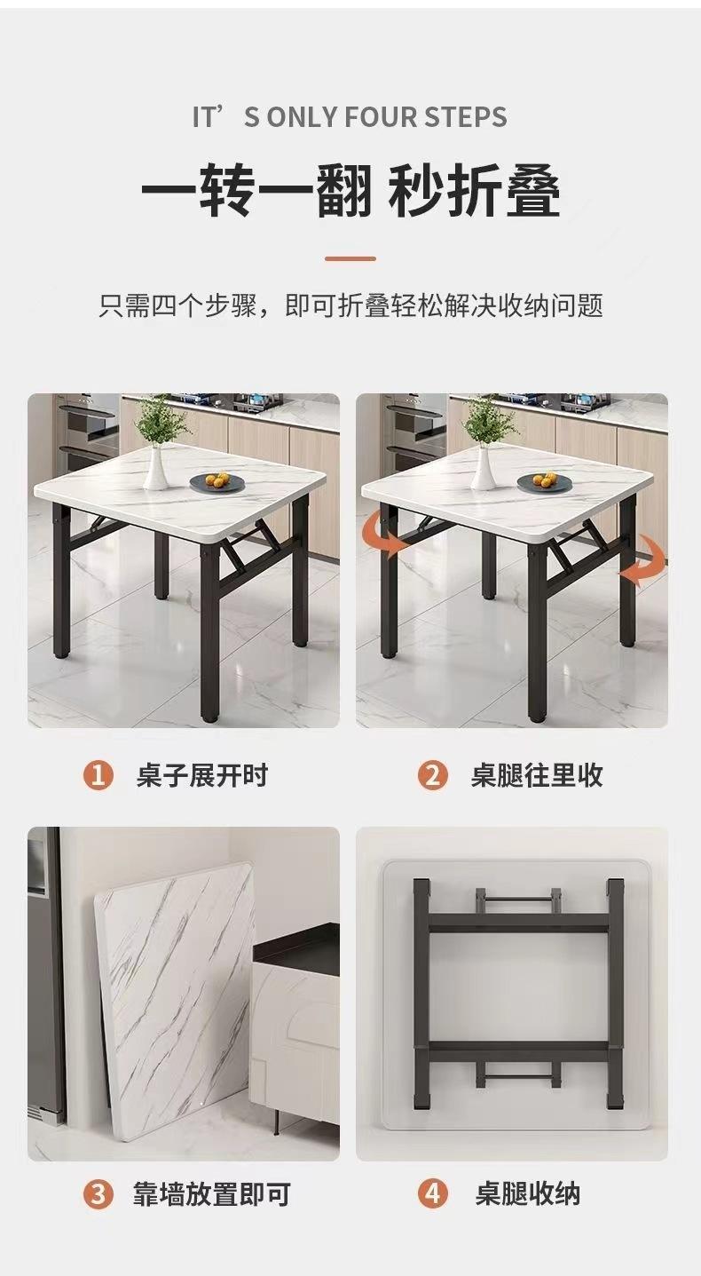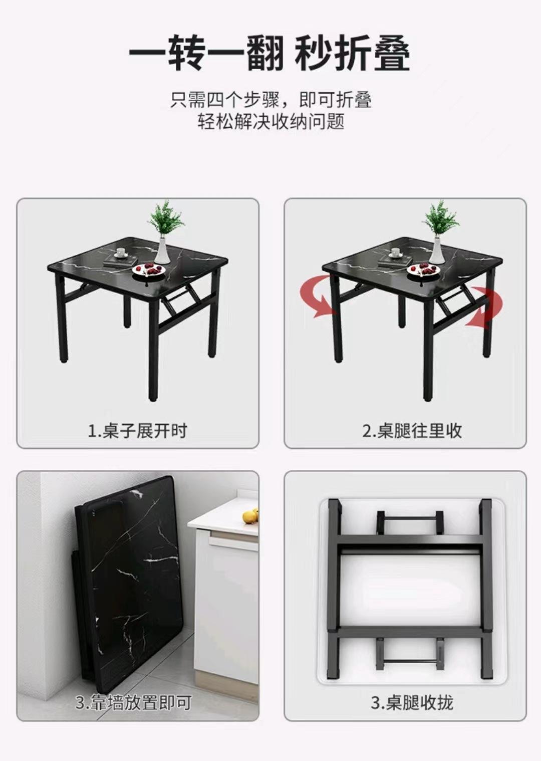 Mesa de comedor pequeña plegable sin instalación en el hogar, mesa plegable cuadrada sencilla, mesa de comedor para sala de estar, mesa baja sencilla para casa de alquiler.