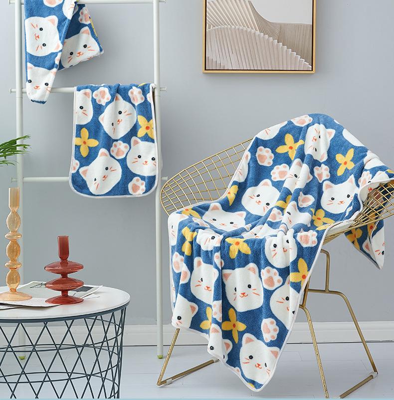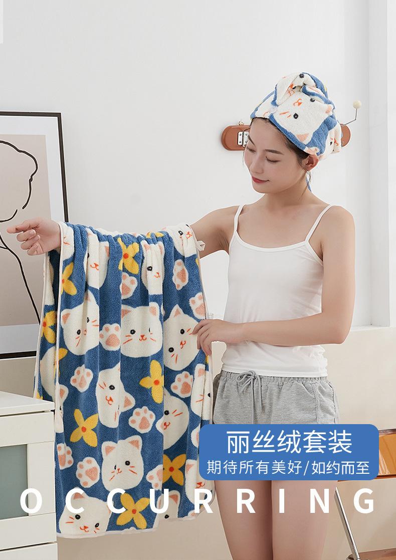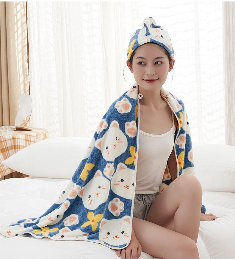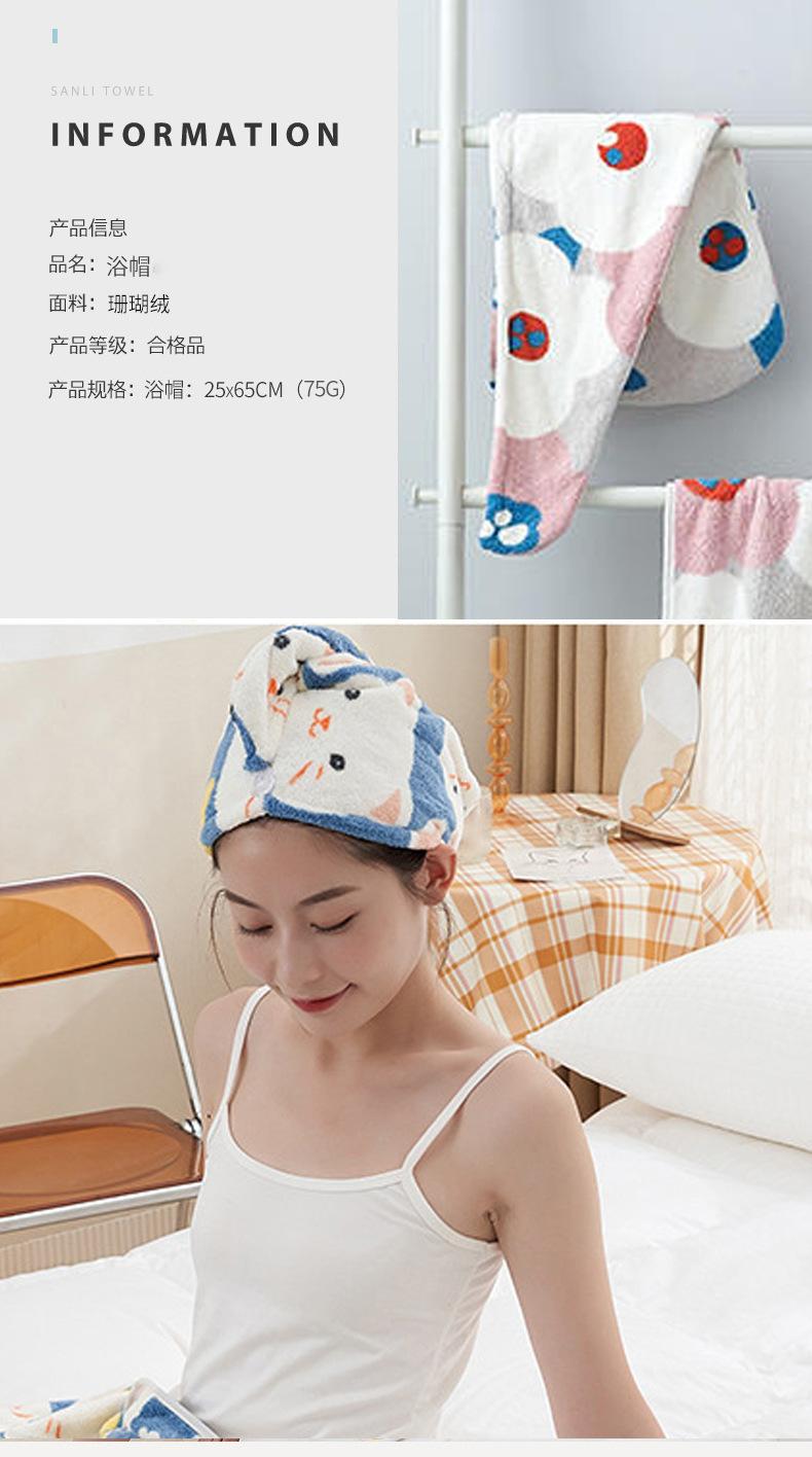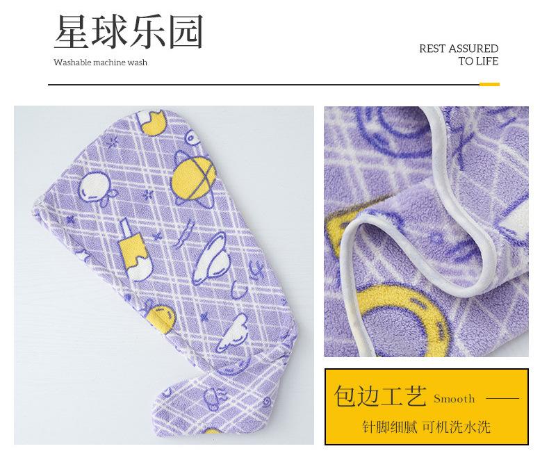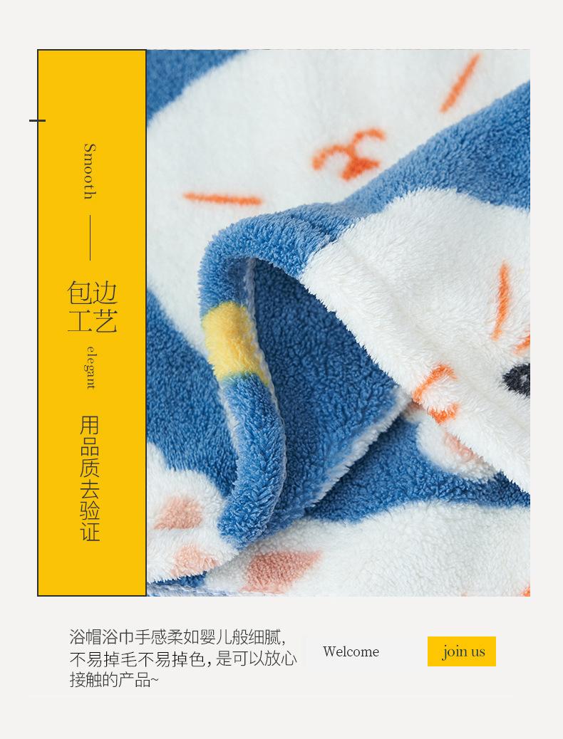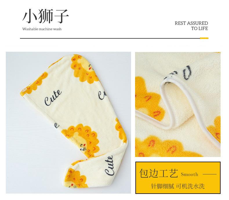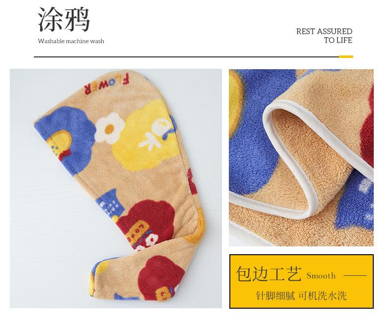 Gorro de ducha al por mayor de fábrica delicado suave y cómodo grueso forro polar de coral estampado de dibujos animados absorbente gorro para secar el cabello