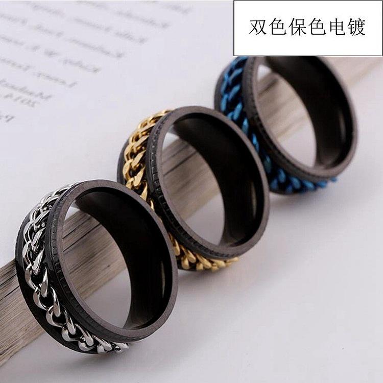 Anillo de acero de titanio de fuente transfronteriza, anillo de cadena giratorio, anillo de pareja europeo y americano de acero inoxidable, joyería japonesa y coreana