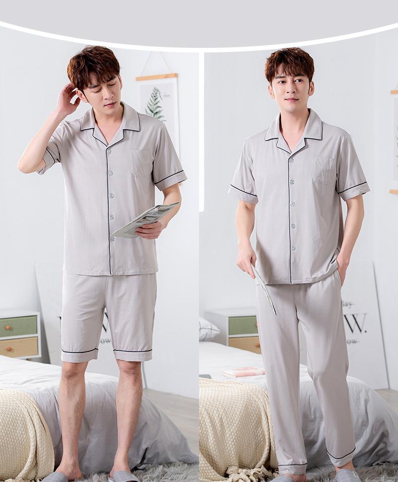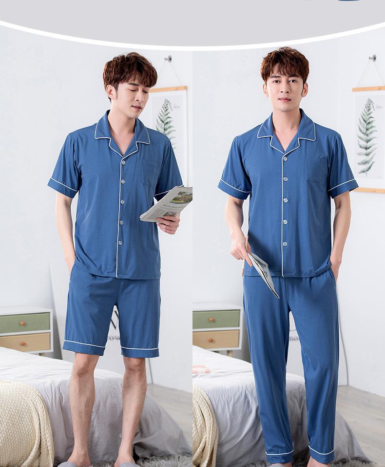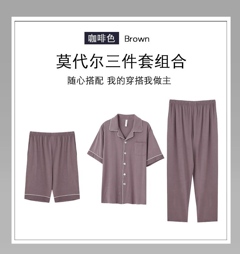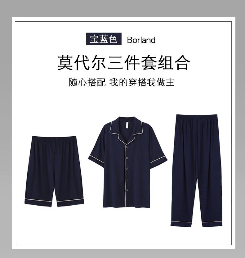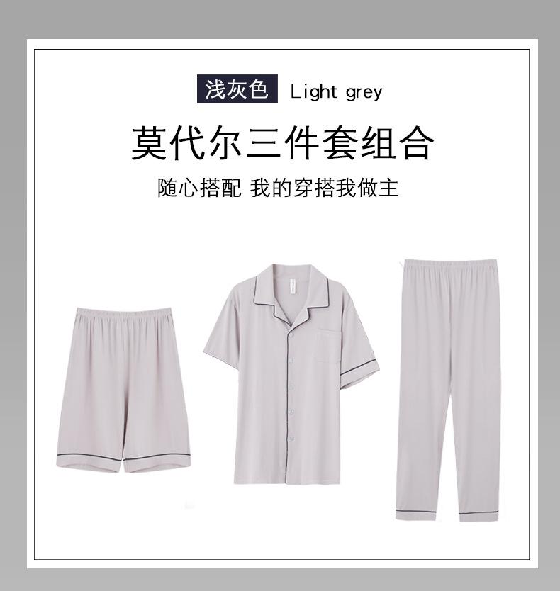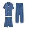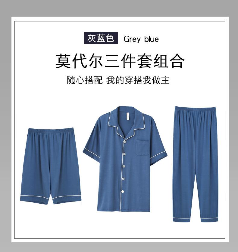 Pijama para hombre Primavera y Verano Tres Piezas Manga Corta Shorts Ropa para el Hogar Traje de Talla Grande de Algodón Modal Fino para Hombre