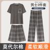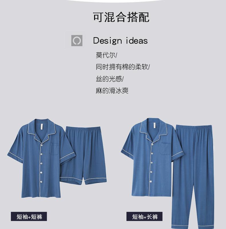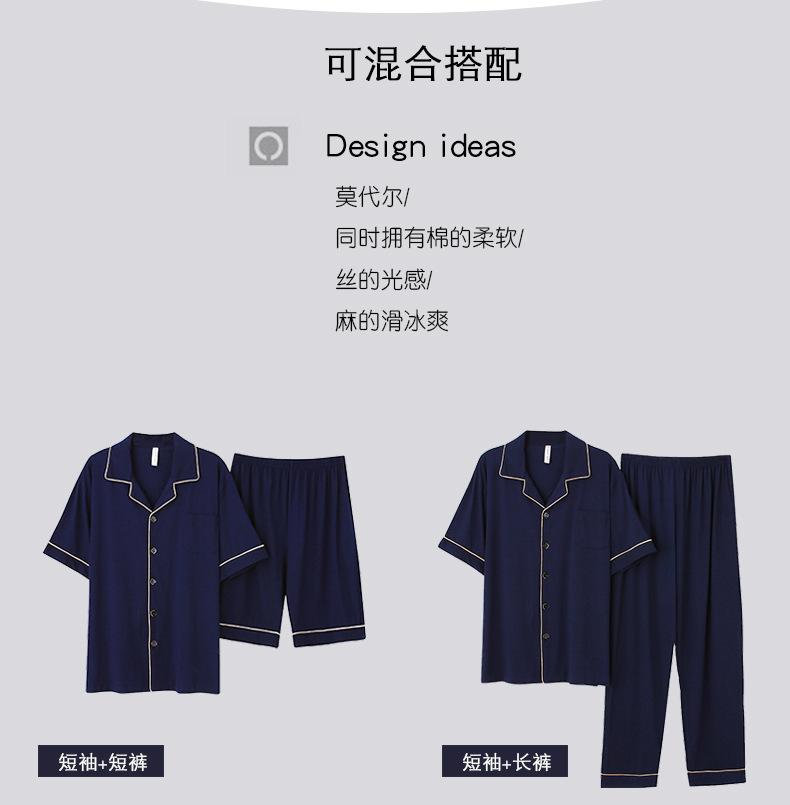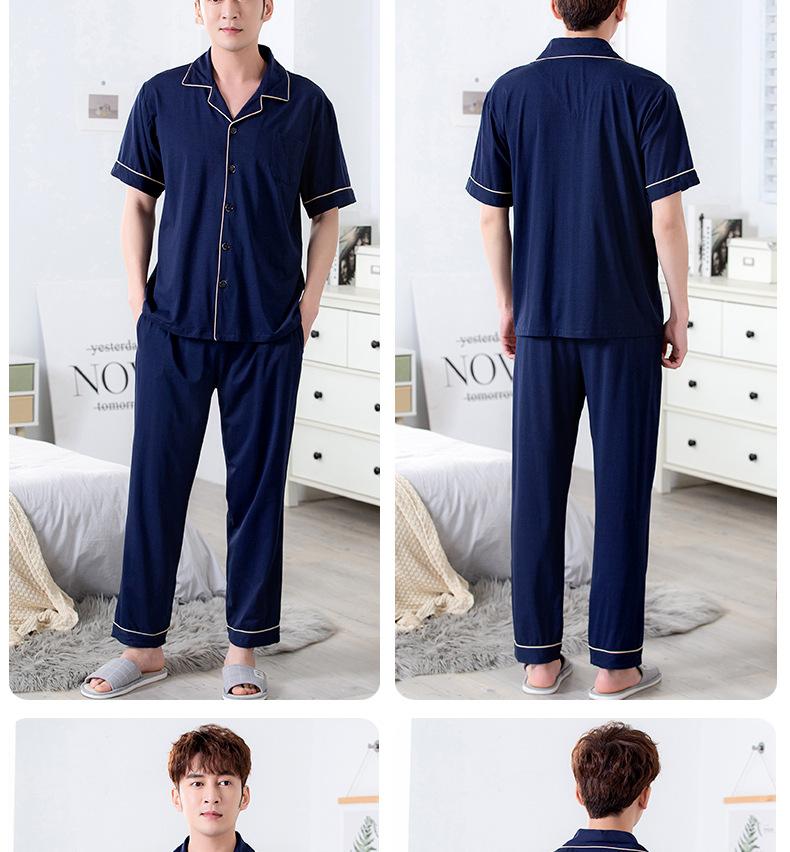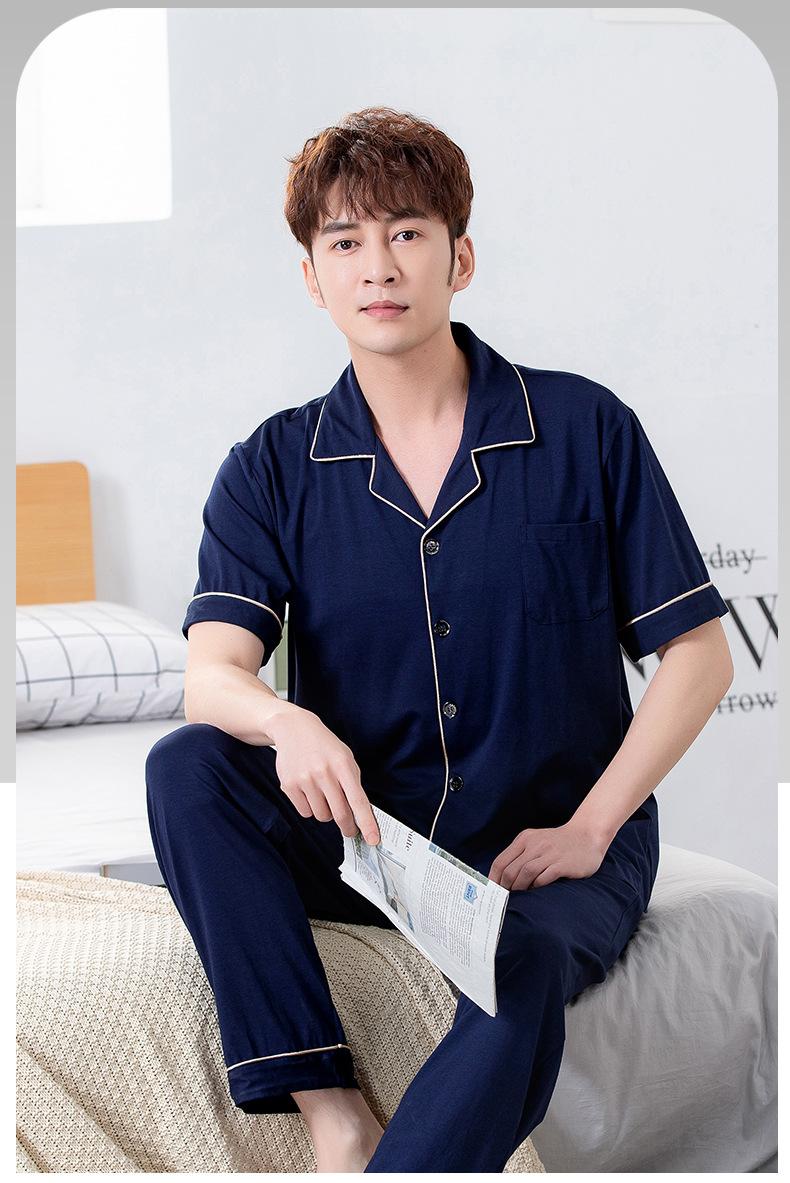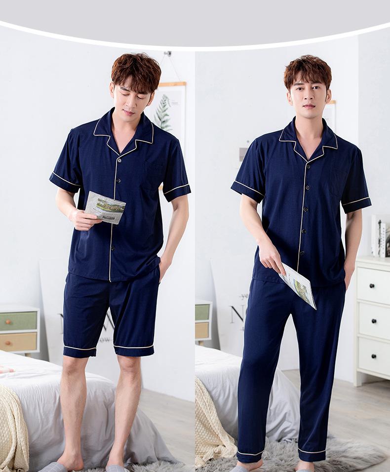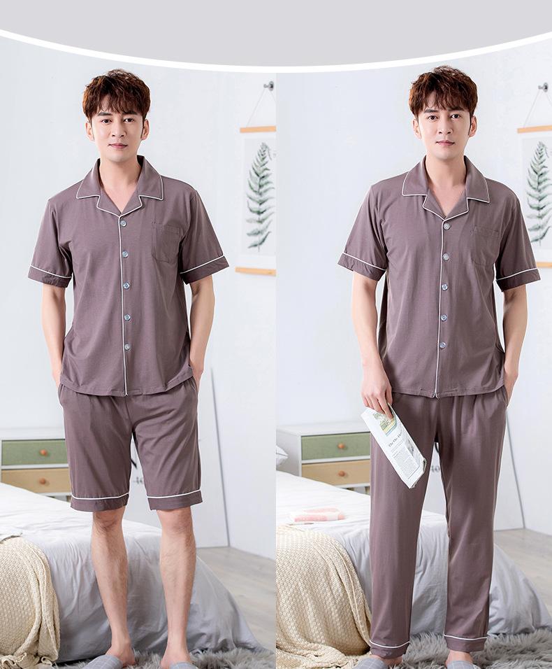 Pijama para hombre Primavera y Verano Tres Piezas Manga Corta Shorts Ropa para el Hogar Traje de Talla Grande de Algodón Modal Fino para Hombre