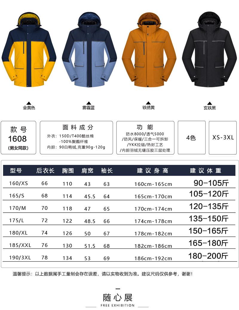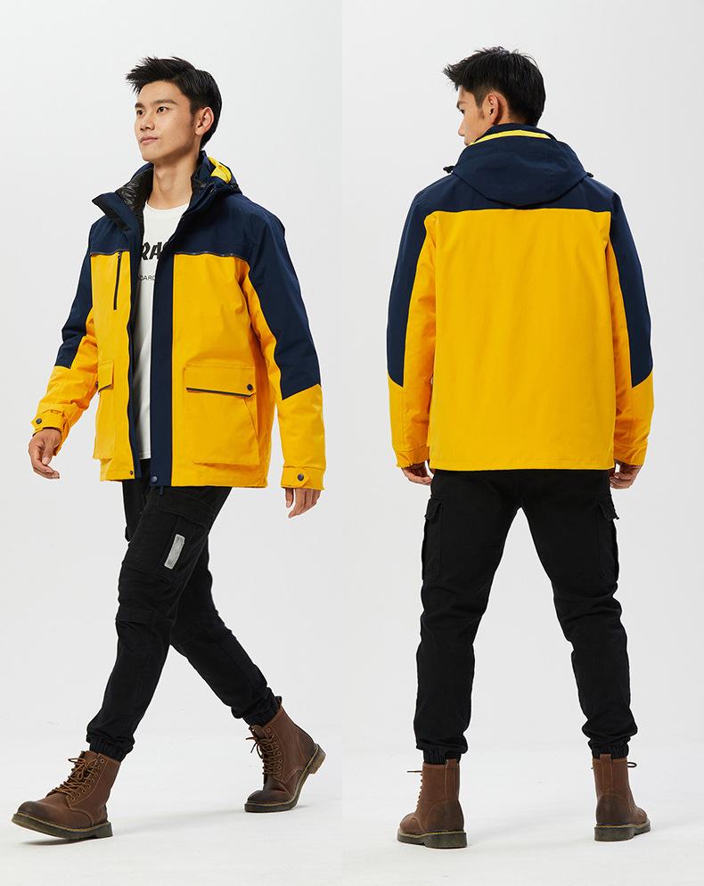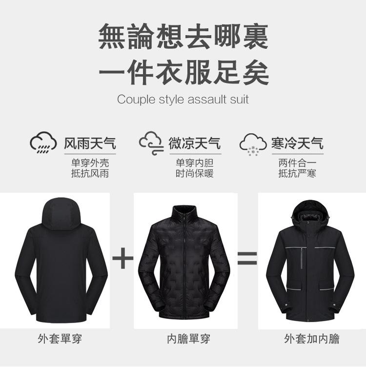 Chaqueta de plumón para exteriores para hombres y mujeres, conjunto de tres piezas de 0.05 kg, desmontable, cortavientos, impermeable, transpirable, ropa de montañismo con capucha