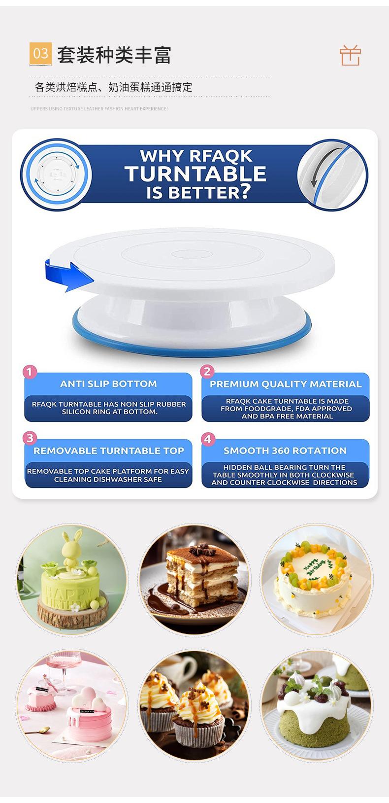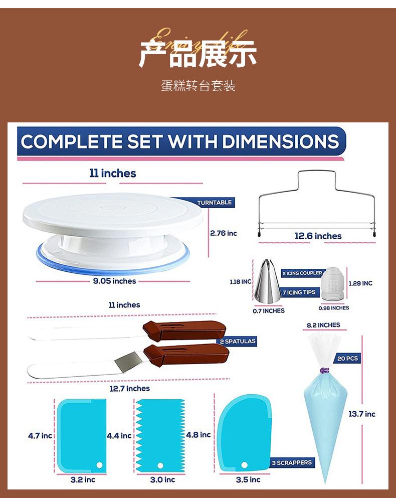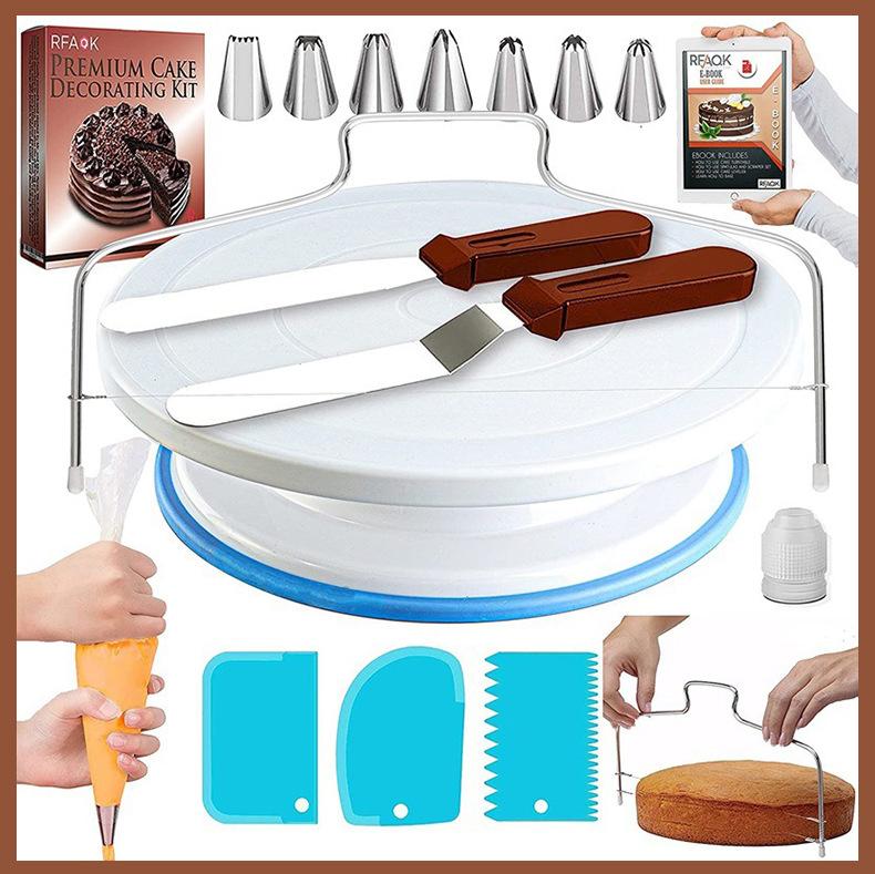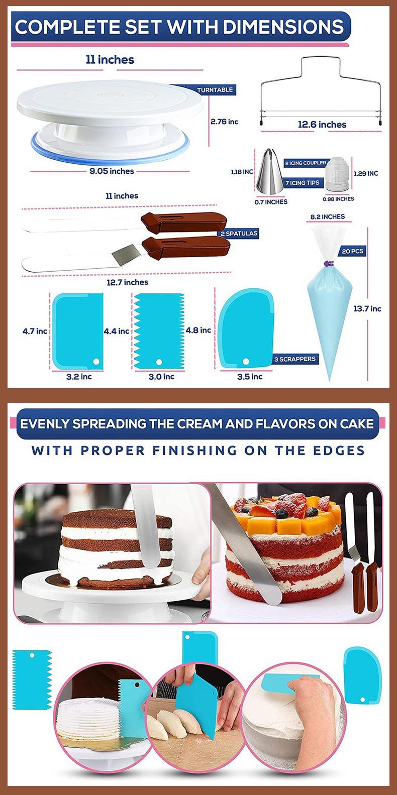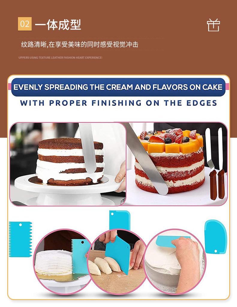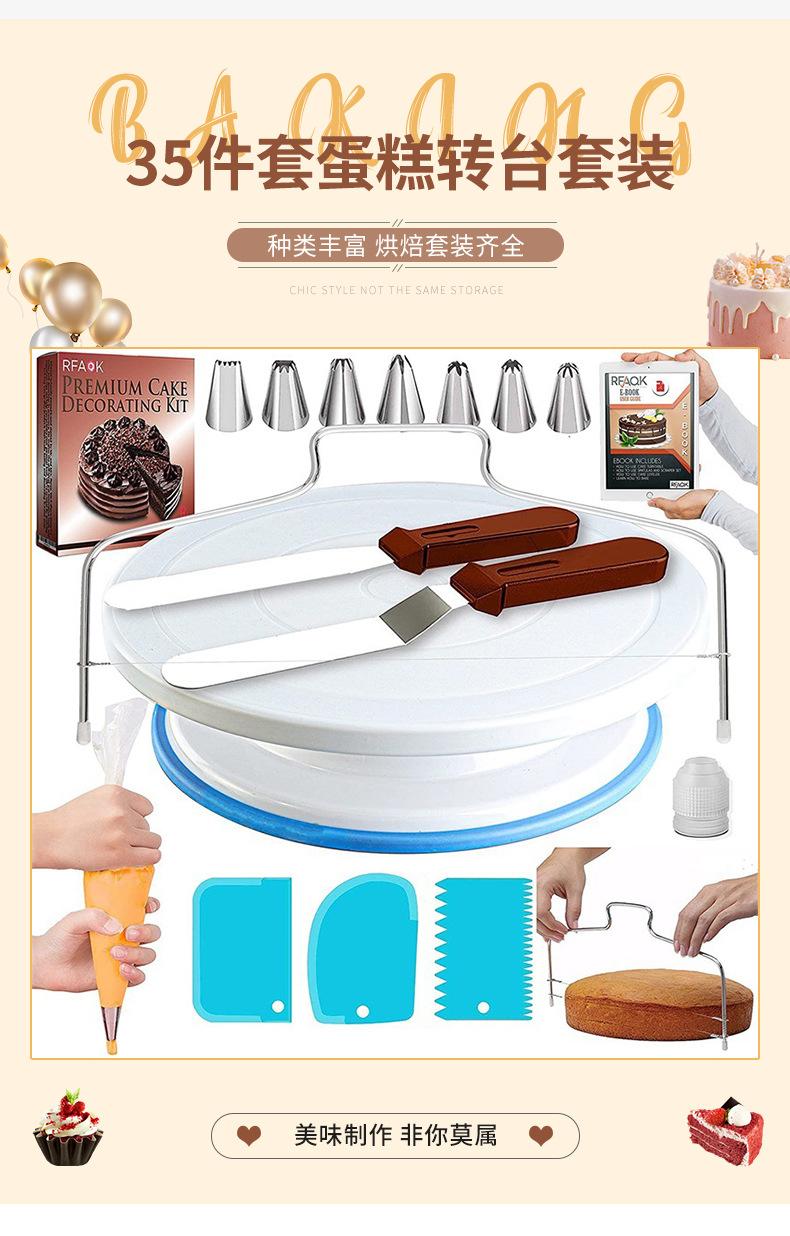 Cake turntable, pastry nozzle, pastry bag, spatula, layering device, scraper