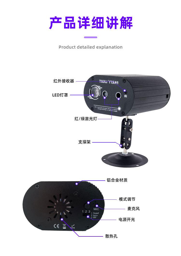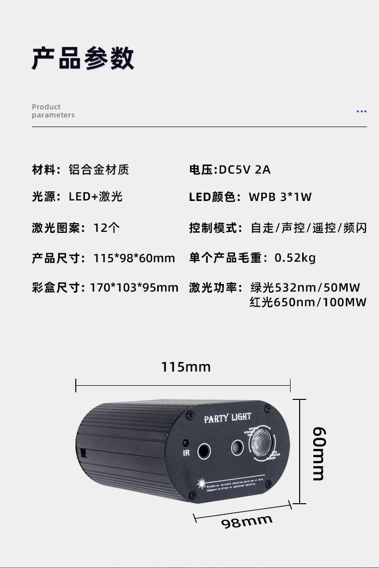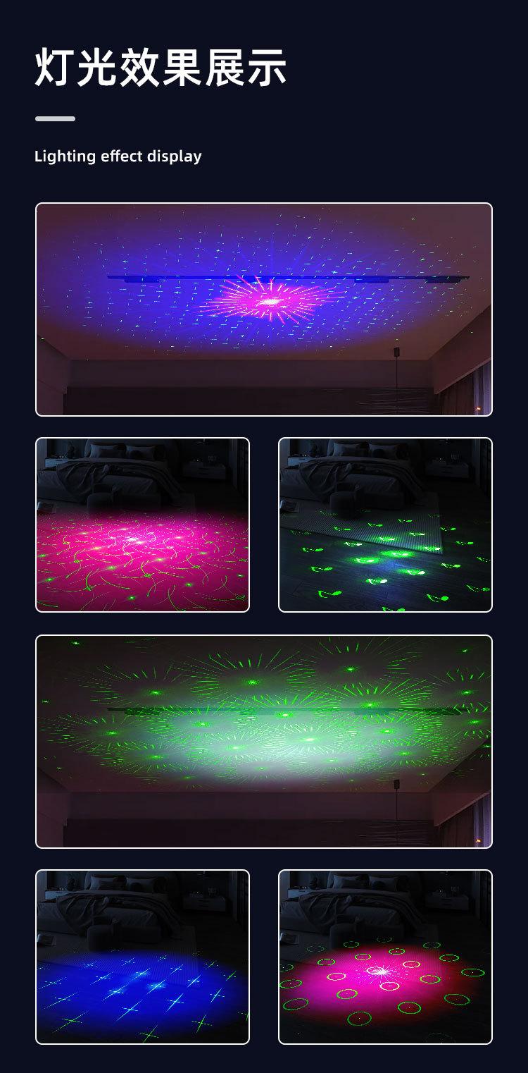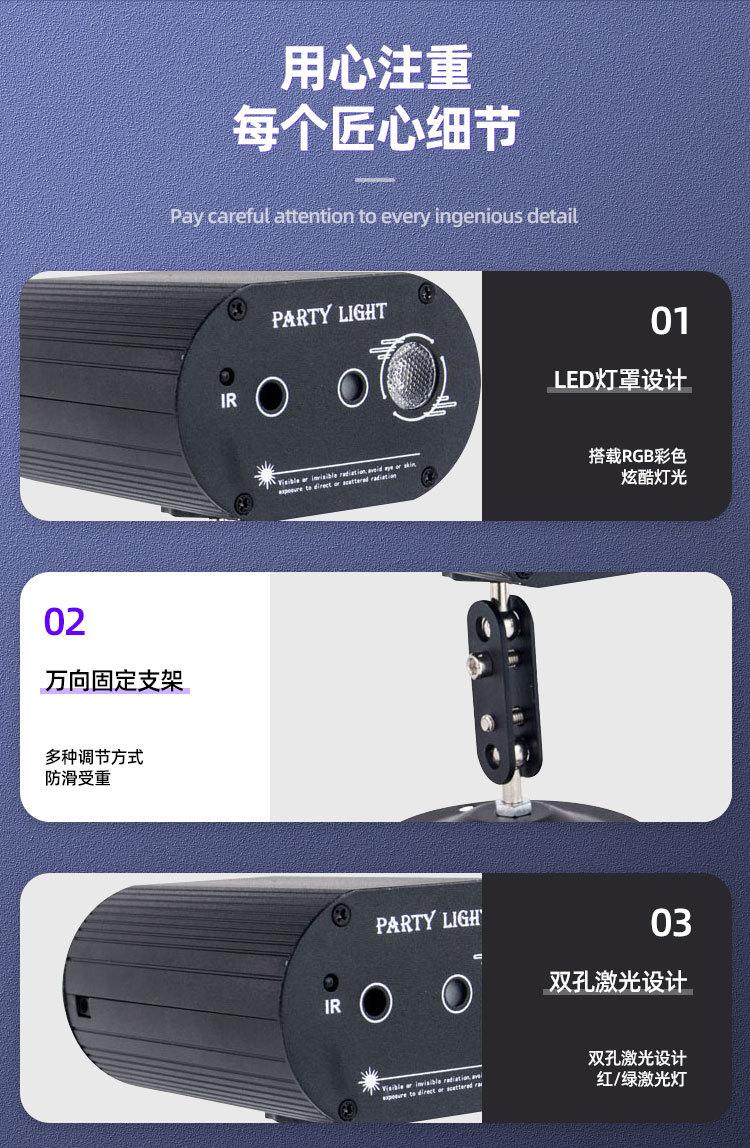 Mini Luz Láser de Doble Orificio y Patrones Múltiples LED a Todo Color Luz de Proyección para Festividades Ambiente de Fiesta Luz de Escenario Espectáculo de Luces