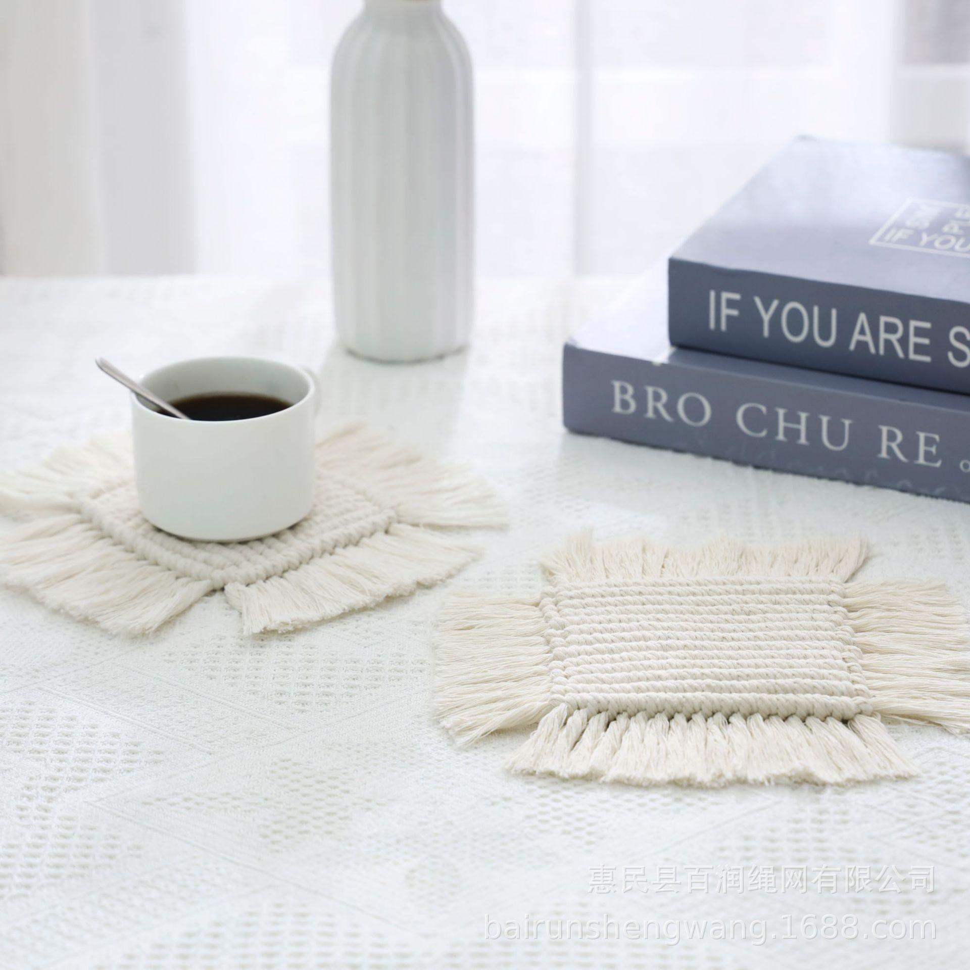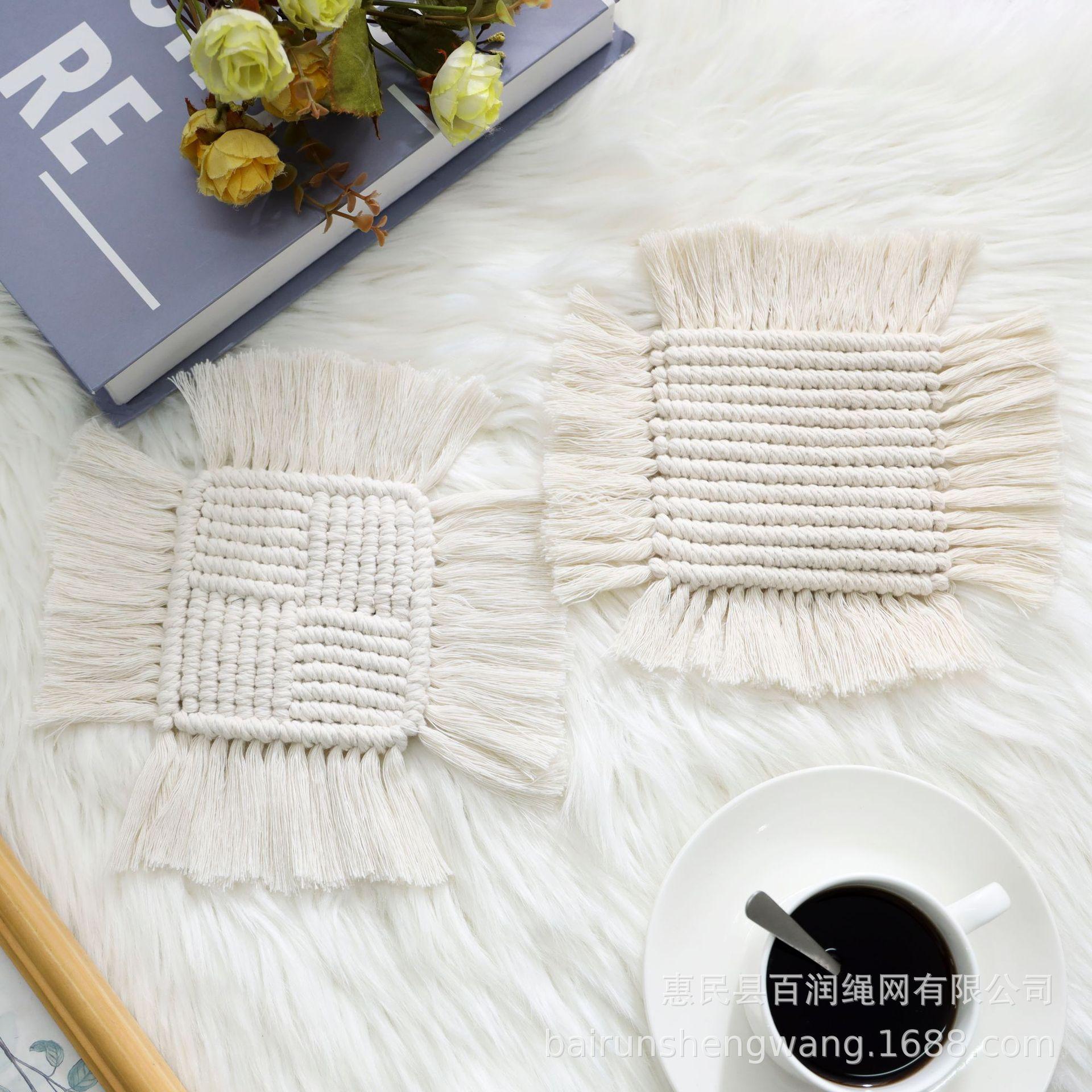Posavasos tejidos de cuerda de algodón bohemio, almohadilla aislante térmica, mantel individual acolchado, directo de fábrica