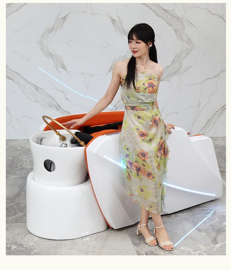 Cama de champú de masaje eléctrico de comercio exterior, cama de terapia de cabeza multifuncional inteligente automática con posición horizontal y temperatura constante, conjunto de fumigación con circulación de agua